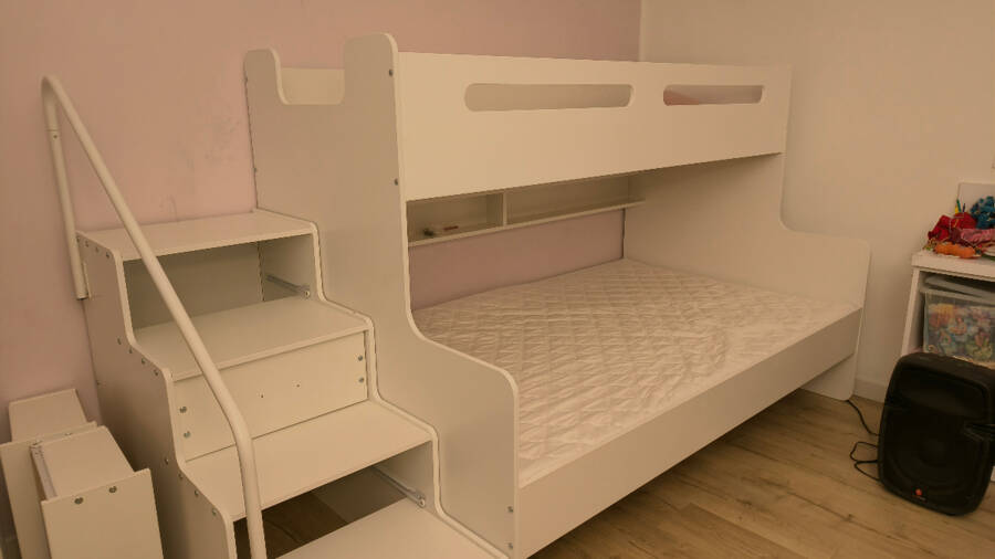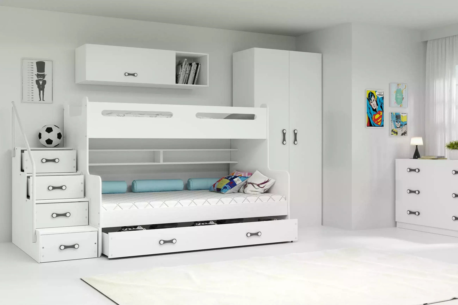 Dviaukštė jaunuolių lova MAX 3, 120x200 cm, balta, su čiužiniais ir stalčiumi – vaizdas 2