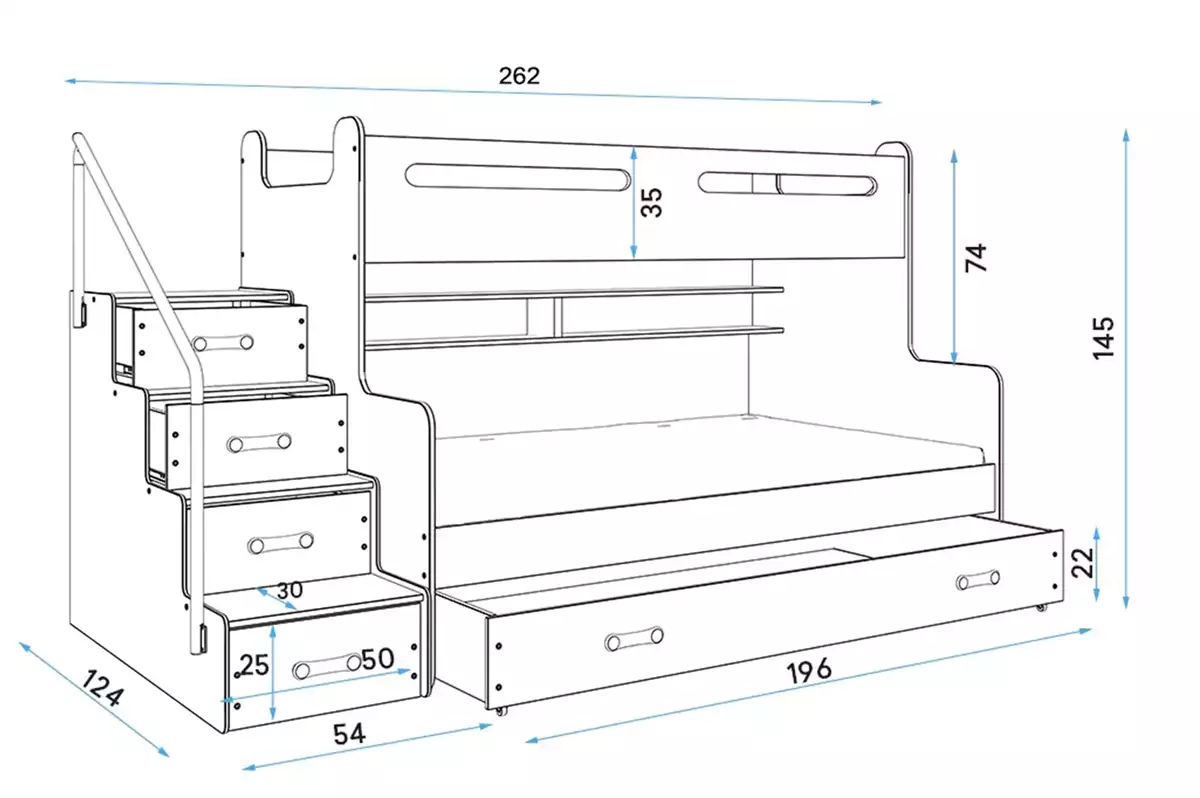 Dviaukštė jaunuolių lova MAX 3, matmenys – vaizdas 10