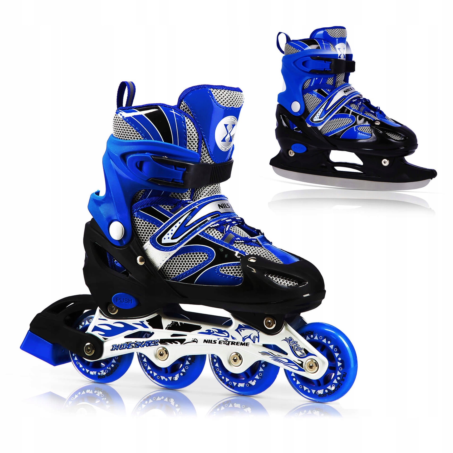 Nils Extreme pačiūžos-riedučiai 2in1, mėlyni – vaizdas 2
