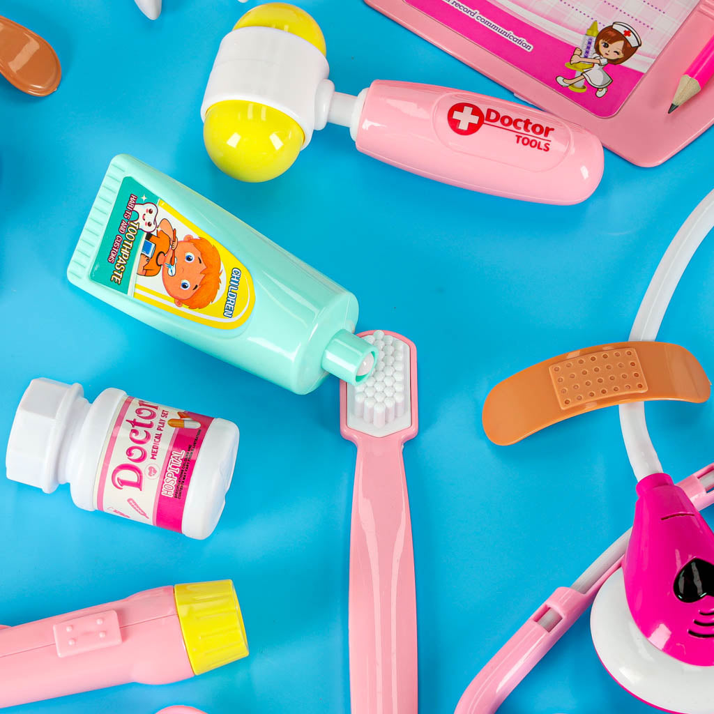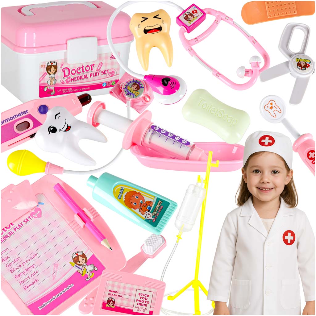 Pasinerkite į įdomų medicinos pasaulį su „Mažuoju daktaru“ – žavingu 35 dalių gydytojo rinkiniu lagaminėlyje! Šis baltos ir rožinės spalvos rinkinys leidžia vaikams įkūnyti gydytojo ar slaugytojos vaidmenį, o šviečiantys žaislai suteikia žaidimui dar daugiau tikroviškumo ir interaktyvumo.