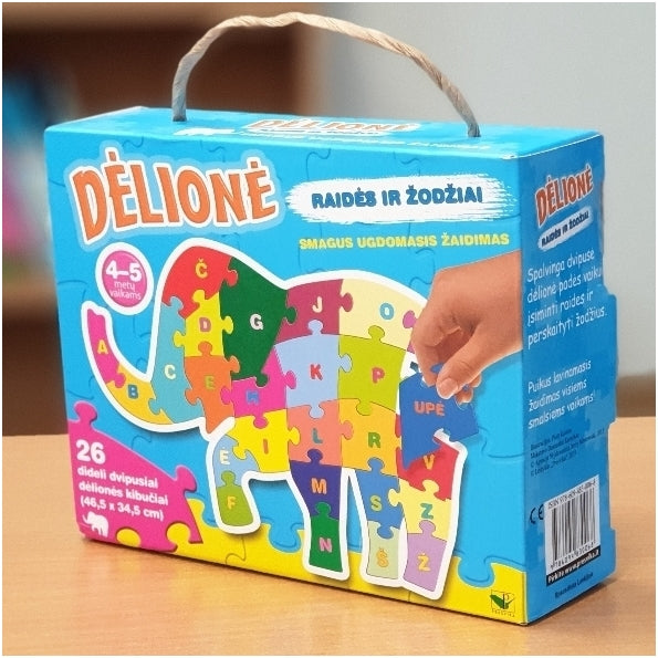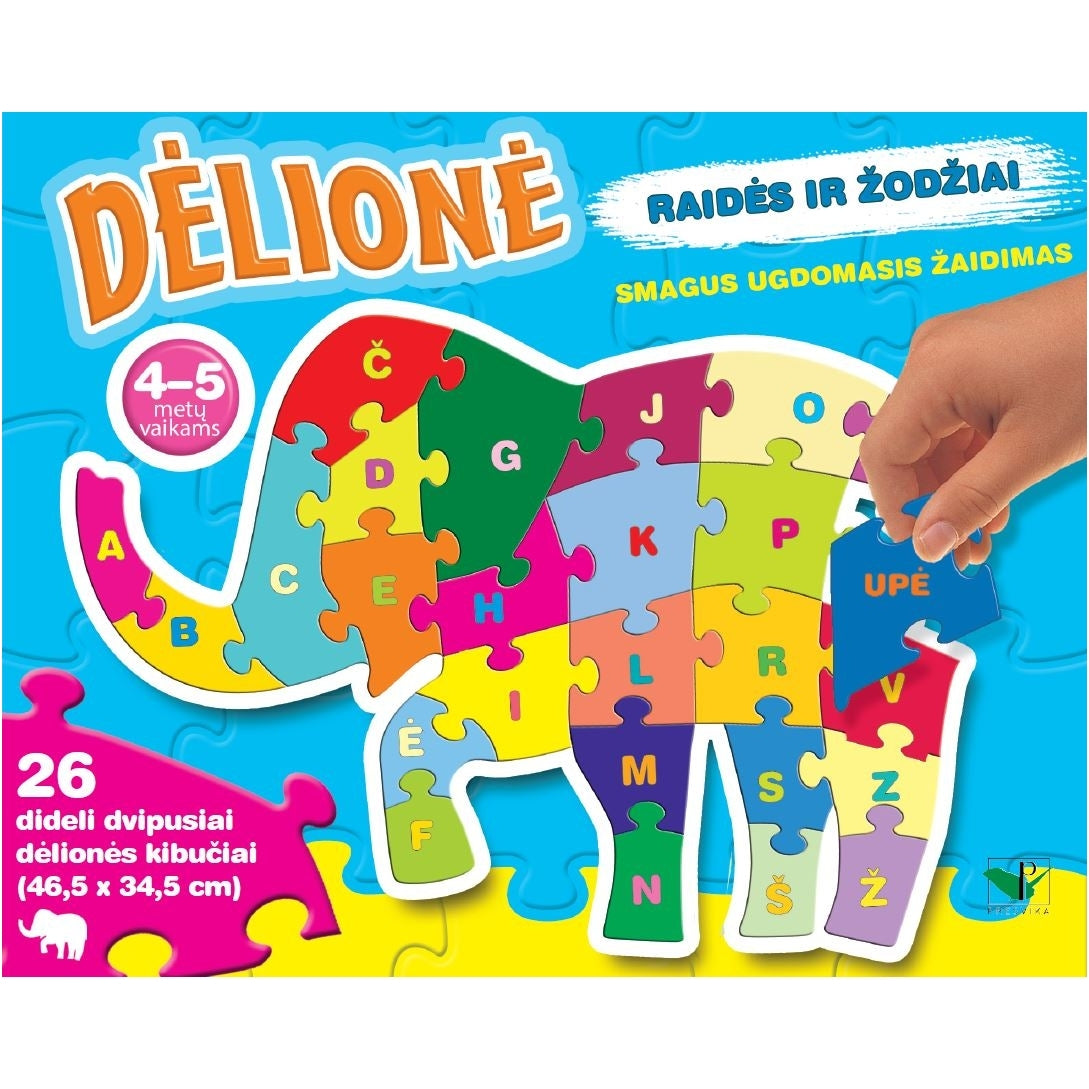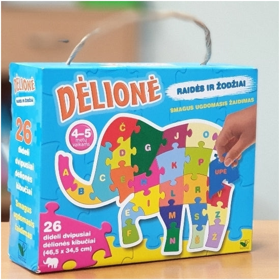 Dėlionė DRAMBLYS. Raidės ir žodžiai. 4-5 metų vaikams. 26 dideli dvipusiai kibučiai