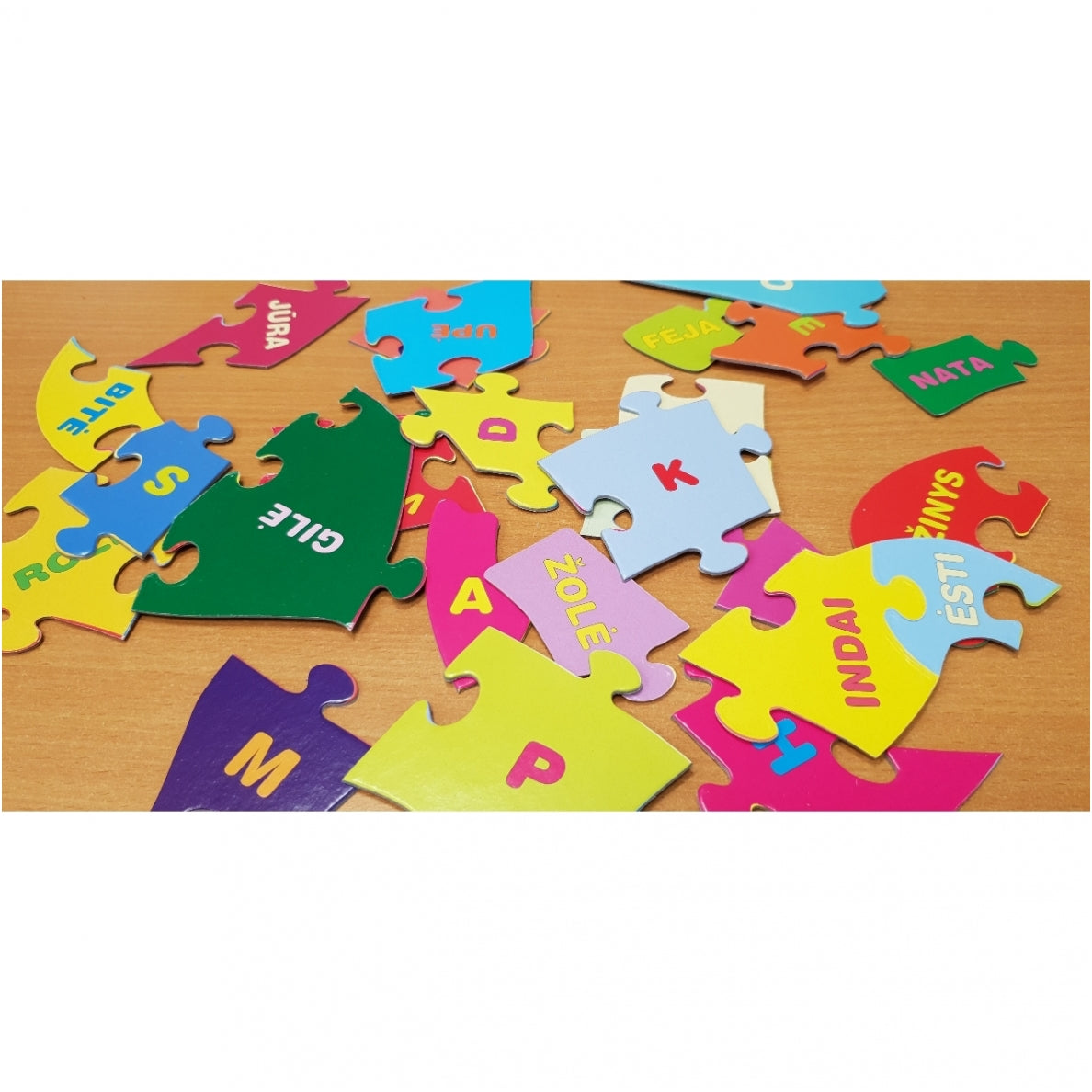 Dėlionė DRAMBLYS Raidės ir žodžiai 4-5 metų vaikams 26 dideli dvipusiai kibučiai – vaizdas 2