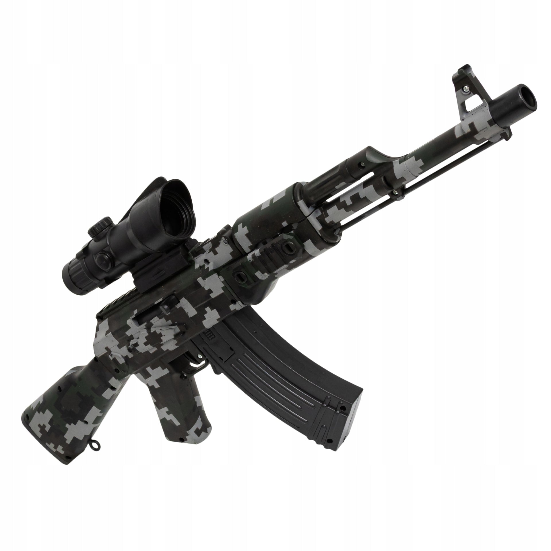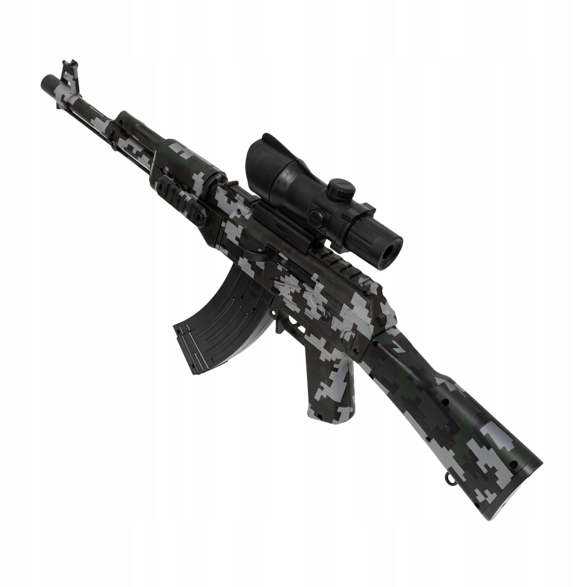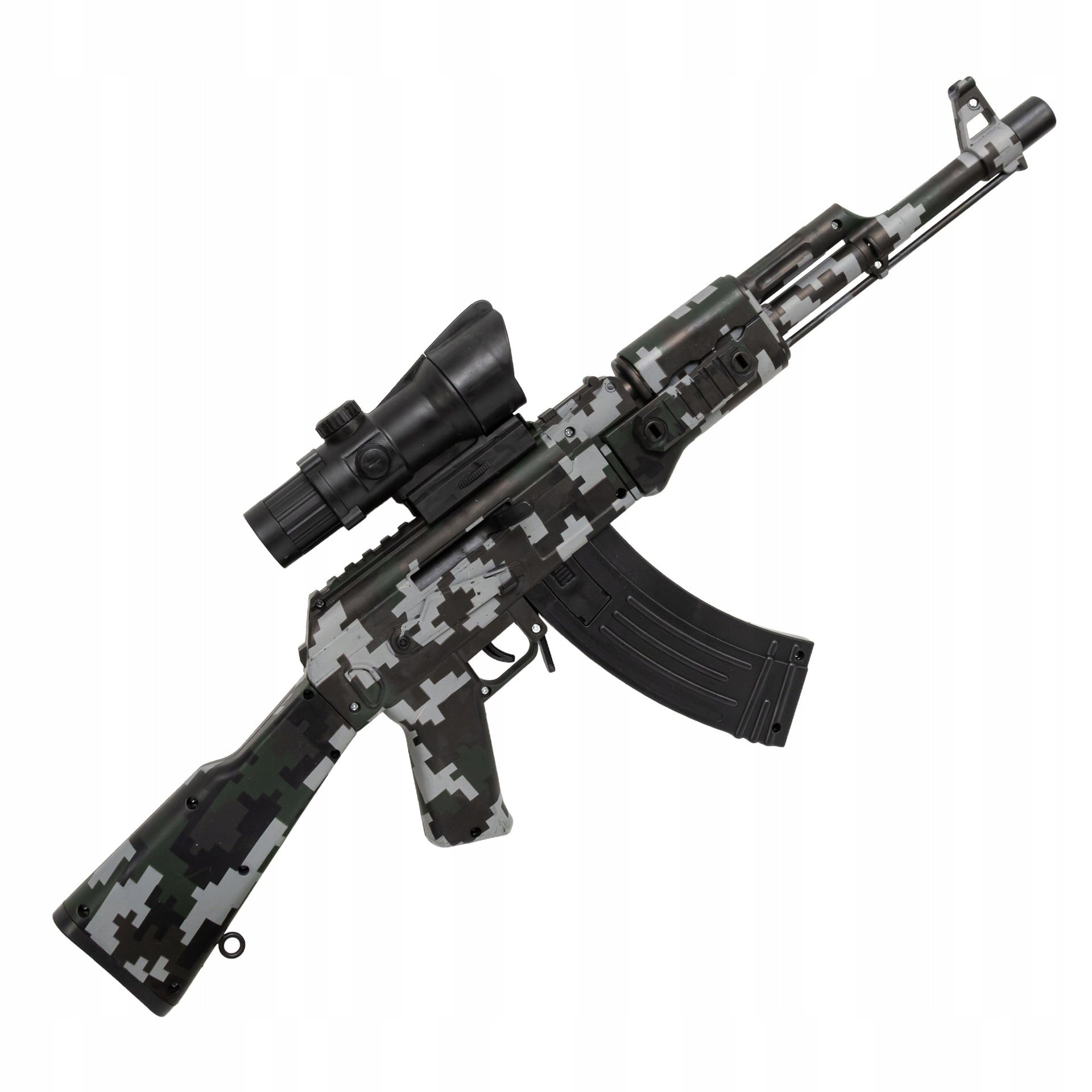 Šis automatinis žaislinis karabinas pasižymi aukšta kokybe ir ilgaamžiškumu, pagamintas iš lengvo ir patvaraus ABS plastiko. Keturios svarbiausios funkcijos leidžia pasirinkti tiek serijinį, tiek pavienį šaudymą, todėl žaidimas tampa dar įdomesnis ir dinamiškesnis.