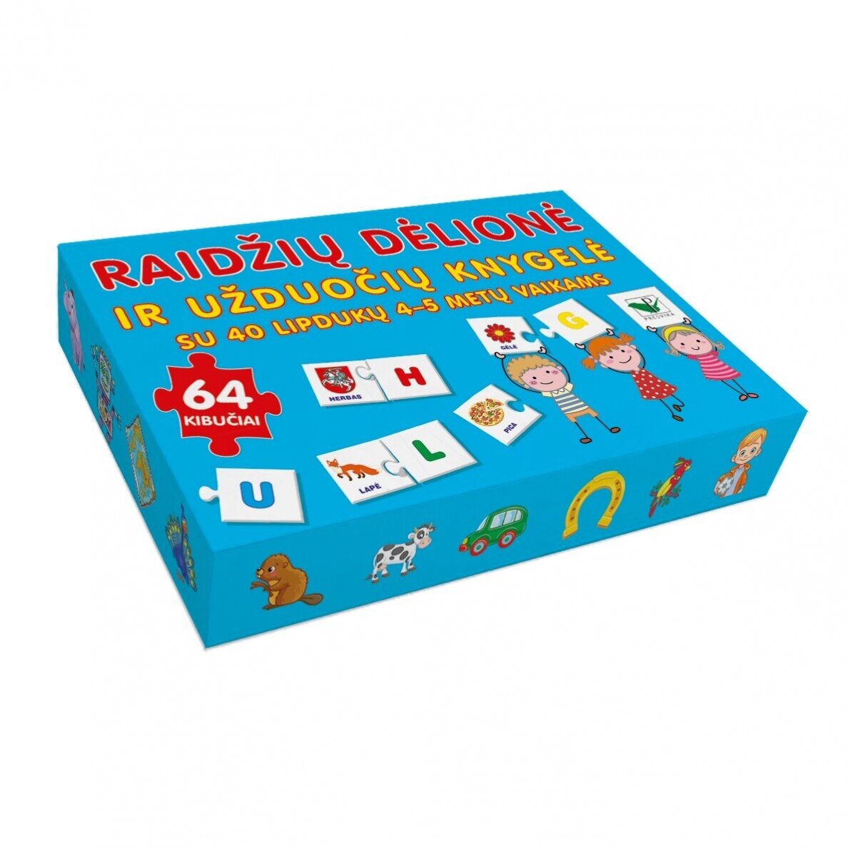 Šis smagus raidžių pažinimo žaidimas padės 4-erių ar 5-erių metų vaikui be didelių pastangų įsidėmėti raides. Vieną dėlionę sudaro du kibučiai: raidės ir ja prasidedančio žodžio su iliustracija. Tokių porų yra 32, tad iš viso kibučių – 64. Dėžėje vaikas ras ir užduočių knygelę su 40 lipdukų! Atlikdamas smagias užduotis ir klijuodamas lipdukus vaikas įtvirtins įgytus įgūdžius, lavins mąstymą, dėmesį ir atmintį.