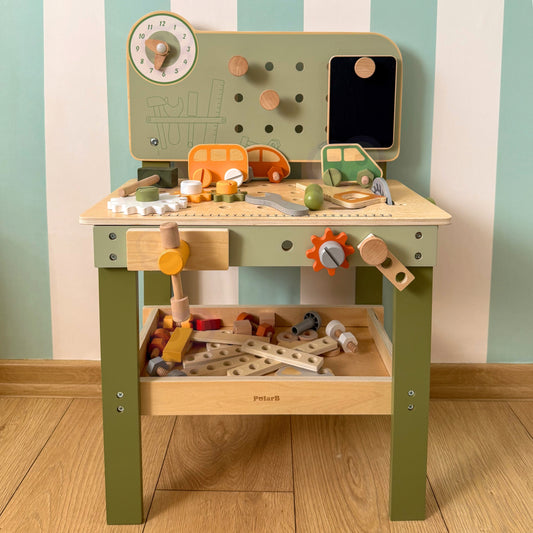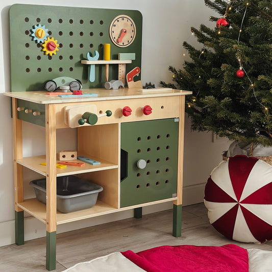 WOOPIE GREEN Medinis STEM Dirbtuvių Stalas su Įrankių Rinkiniu