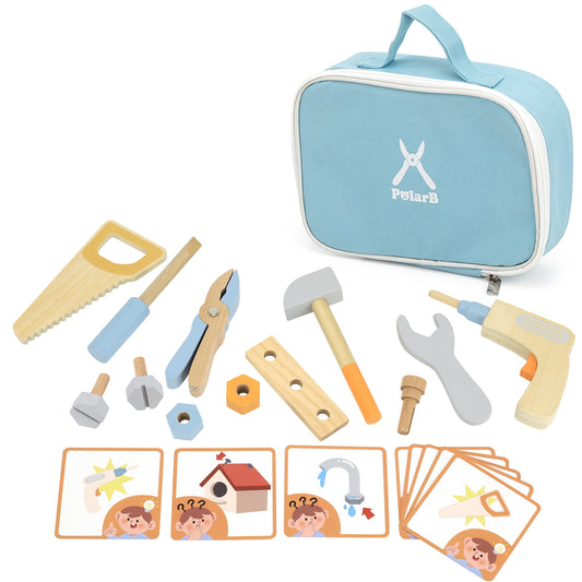 TOOKY TOY Medinė įrankių dėžė su rinkiniu, 18 elementų