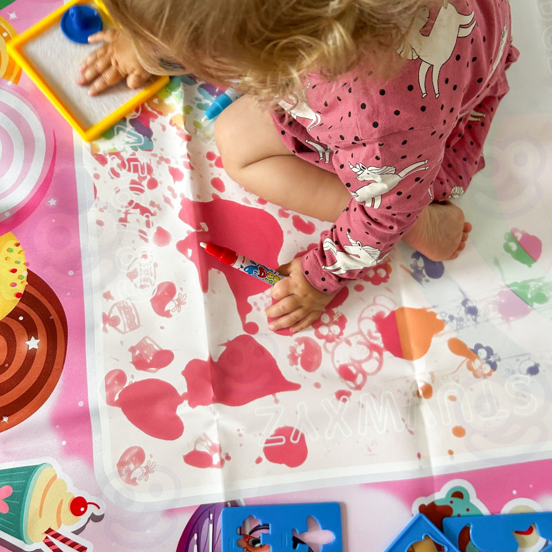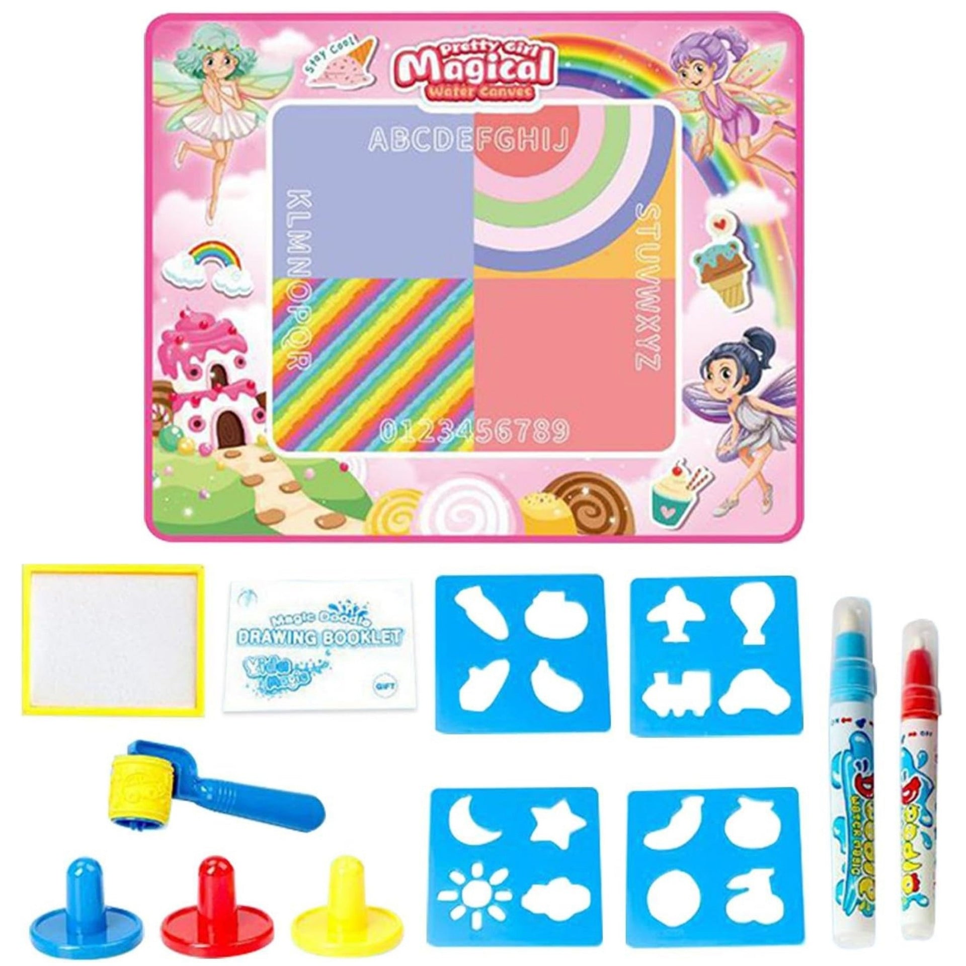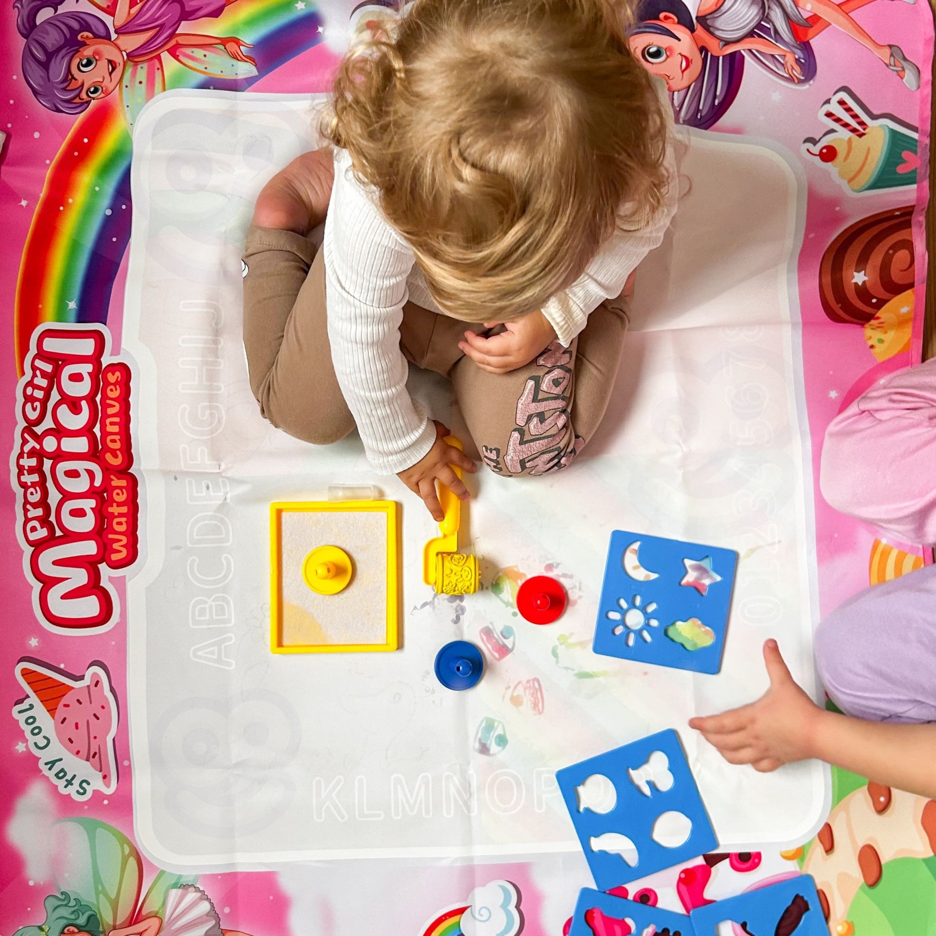 Piešimas ant vandens kilimėlio aktyviai lavina rankos ir akies koordinaciją bei smulkiąją motoriką. Pasikartojantis piešimo ir išnykimo ciklas ugdo vaiko kantrybę ir kūrybiškumą, o fėjų ir saldainių tematika stimuliuoja vaizduotę. Žaidimas be dažų ir rašalo puikiai tinka jautrios odos ar alergiją turintiems vaikams.