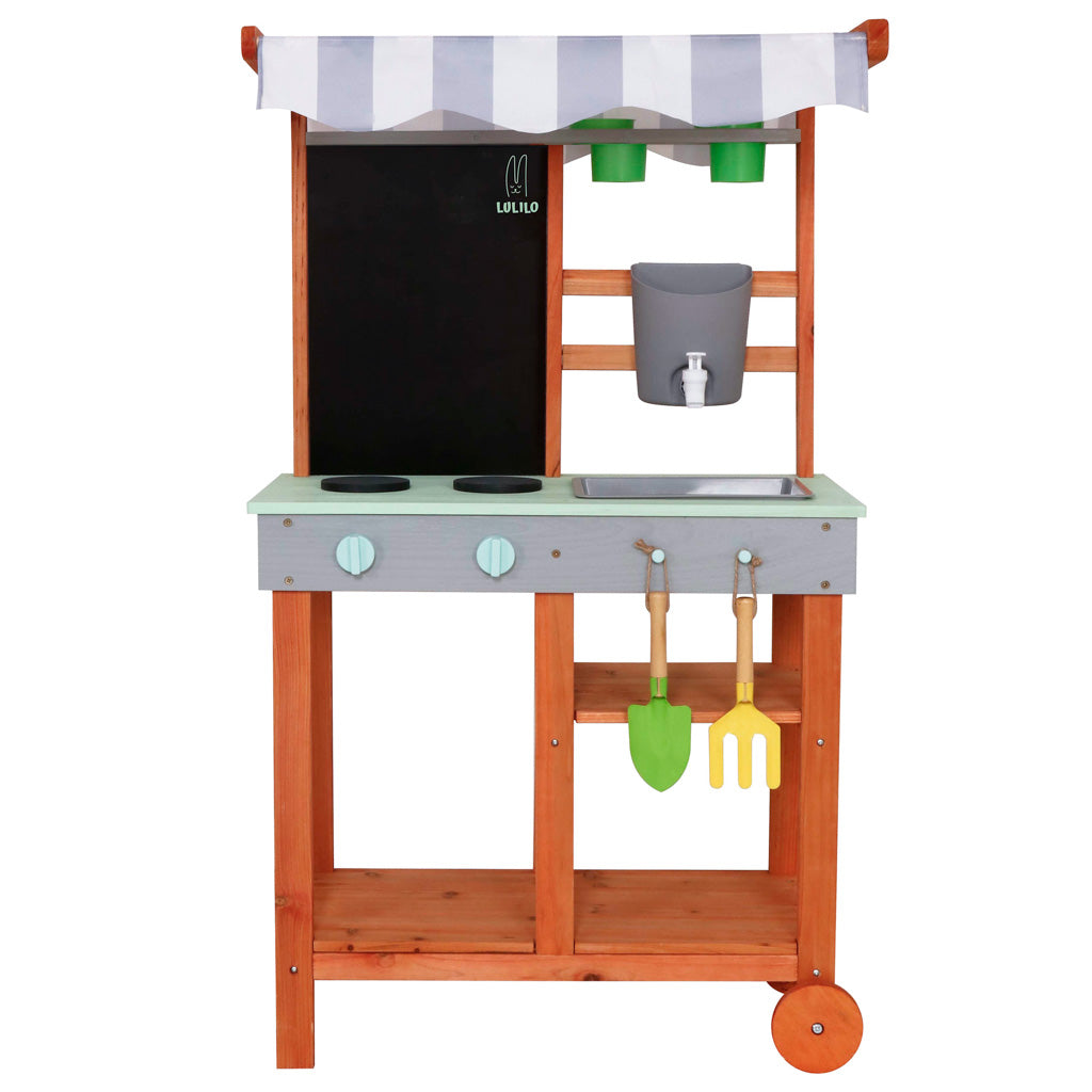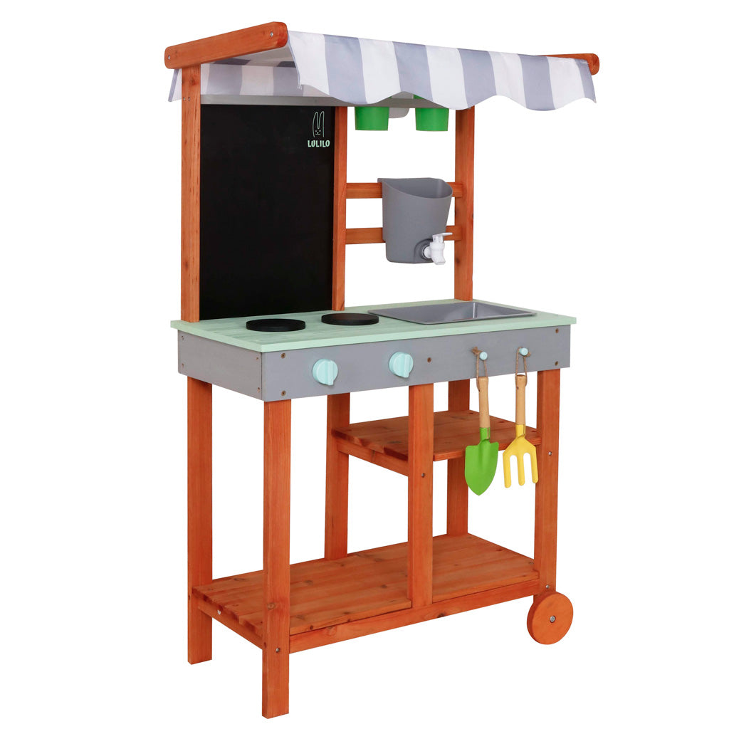 Pasinerkite į kūrybiškumo ir atradimų pasaulį su Lulilo Sableto medine purvo virtuvėle, skirta lauko žaidimams. Ši išskirtinė sodo virtuvėlė, pagaminta iš aukštos klasės impregnuotos eglės medienos, leidžia vaikams saugiai ir smagiai eksperimentuoti su purvu ir vandeniu. Tai puikus žaislas, skatinantis jutiminį ir socialinį vystymąsi per aktyvius patyrimus gamtoje.