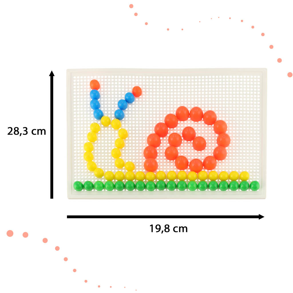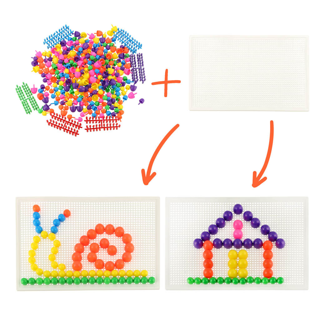 Jį sudaro plastikinė lenta su skylutėmis (28,3 x 19,8 cm) ir 600 smeigtukų (7 spalvų ir 3 dydžių).