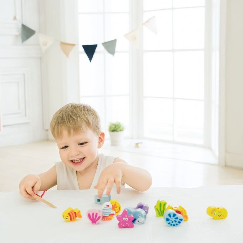 CLASSIC WORLD Medinės virvelinės kaladėlės Aquatic Animals 13 vnt – pagrindinis vaizdas