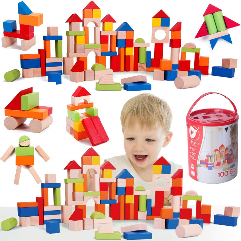Medinės kaladėlės su 100 elementų iš žinomo Classic World prekės ženklo yra idealus pasiūlymas mūsų mažiesiems statybininkams. Blokai suteikia begalę pramogų ir mokymosi. Jie leidžia lavinti rankinius įgūdžius, erdvinę vaizduotę ir gebėjimą susikurti pirmąsias konstrukcijas. Puiki dovanos idėja mažam dizaineriui. Blokai buvo gaminami turint omenyje mažas rankas. Dėl aštrių briaunų jie yra saugūs vaikams. Linksmybėms nebus galo!