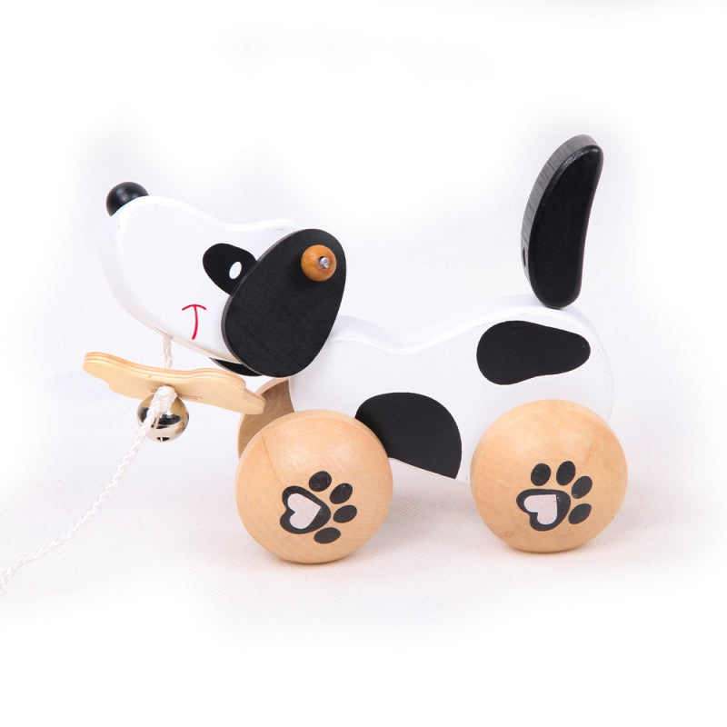 O koks čia mielas šuo? Galite išvesti ją pasivaikščioti! Medinis šuo - traukiamas žaislas yra puikus jūsų kūdikio palydovas.