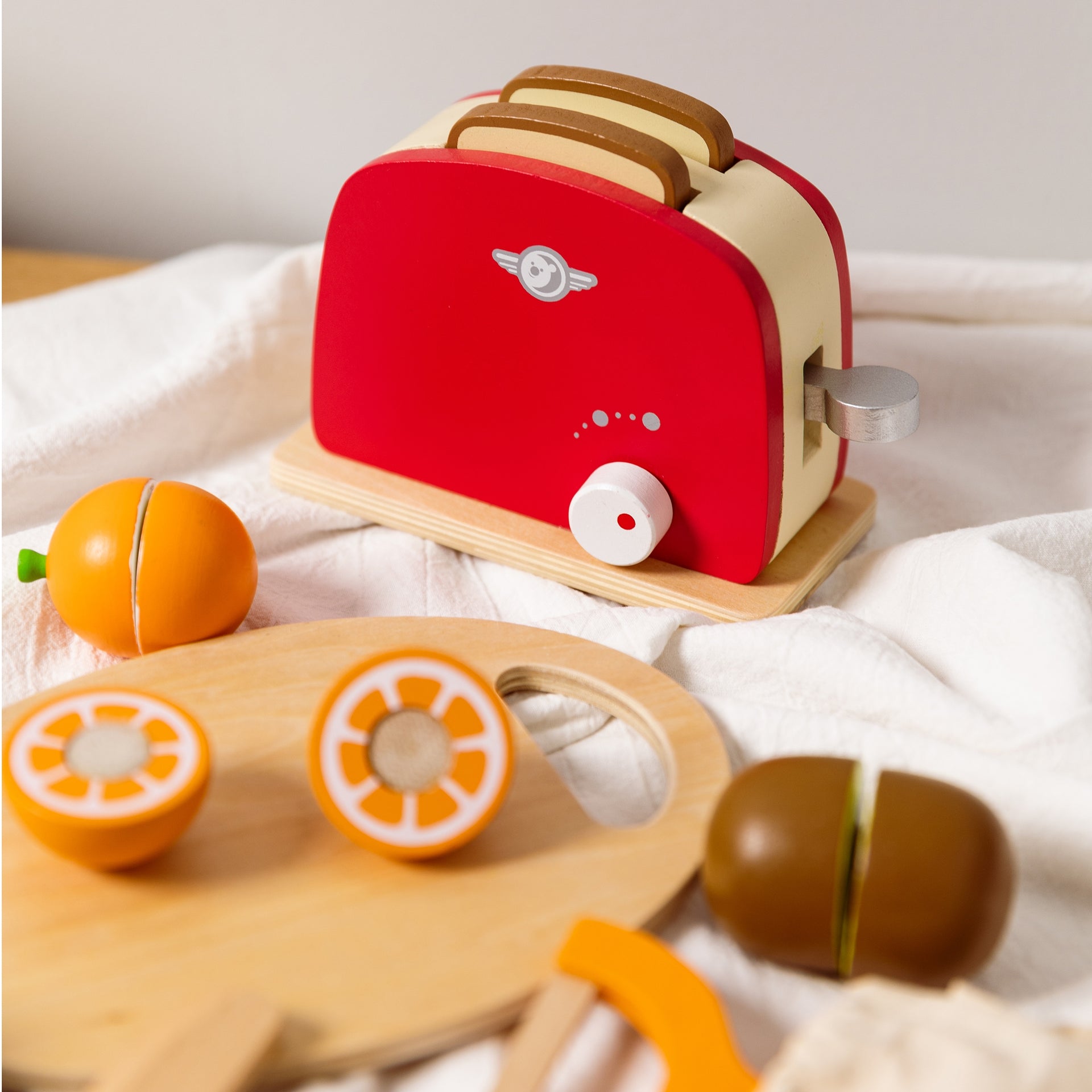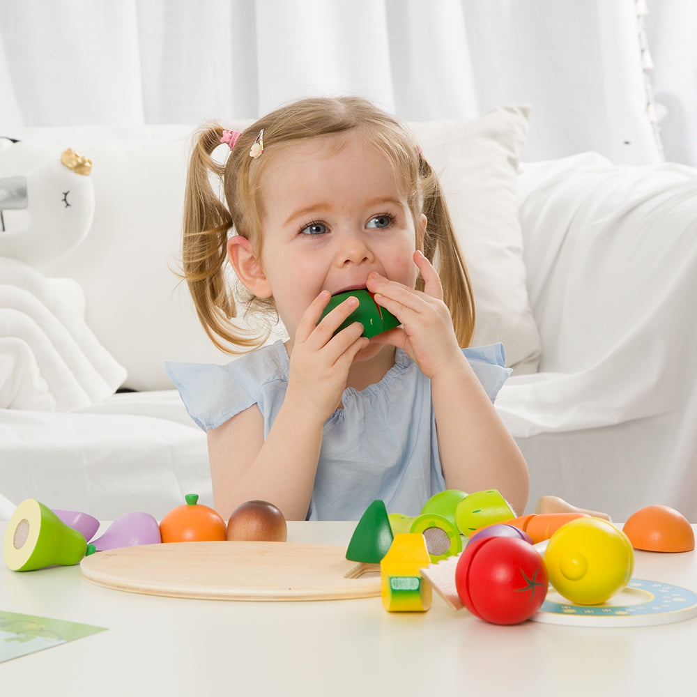 - - Vaikai, kurie ypač mėgsta stebėti, kas vyksta virtuvėje, gali išmėginti savo jėgas prie medinės lentos su vaisiais, kurios dalys sujungiamos Velcro.