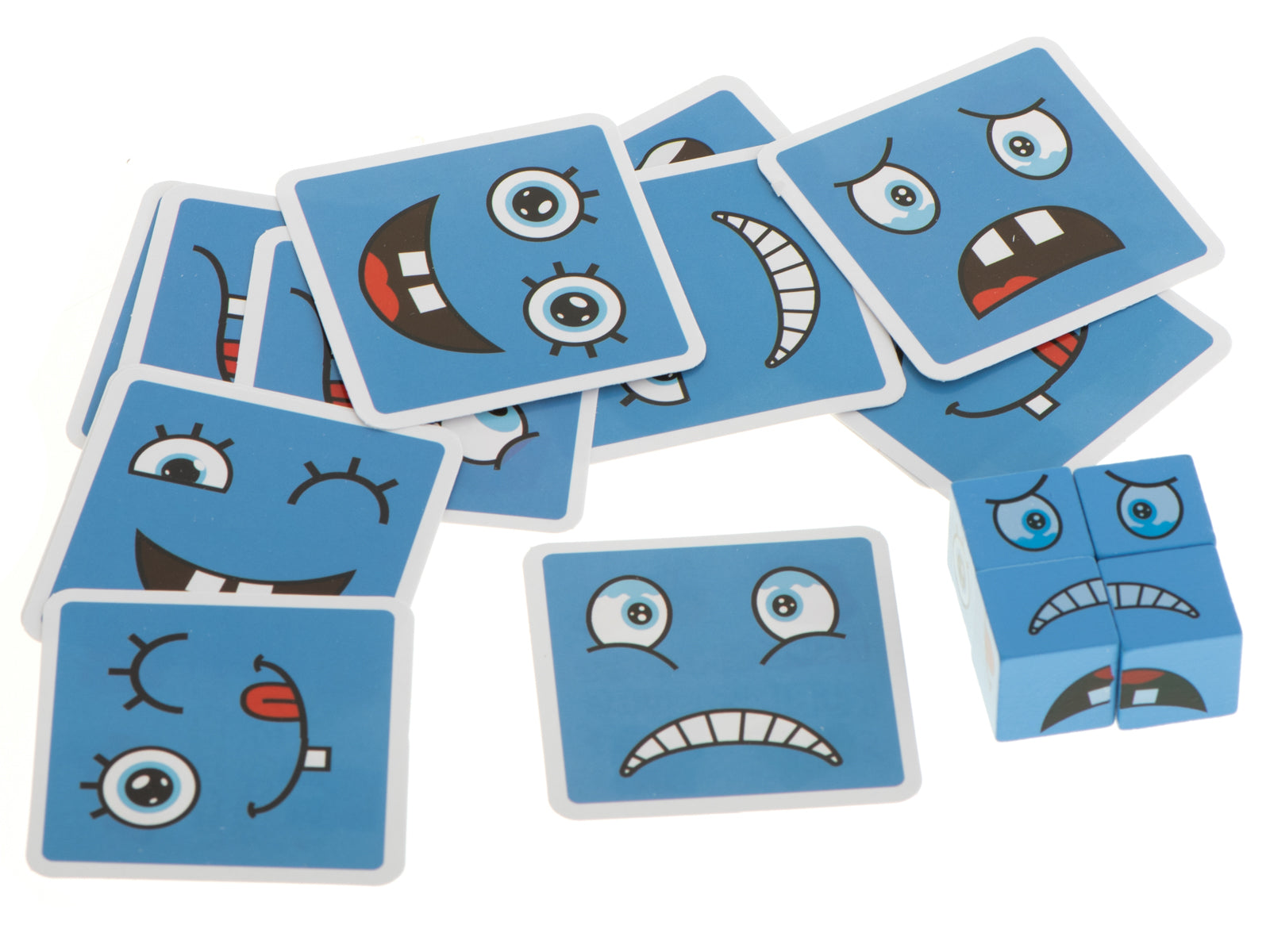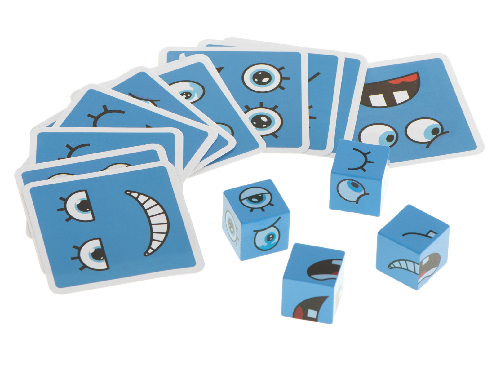 Ištraukite vieną iš kortelių, kurioje pavaizduotas veidas, ir per kuo trumpesnį laiką sudėliokite pavaizduotą veidą naudodami kaladėles.