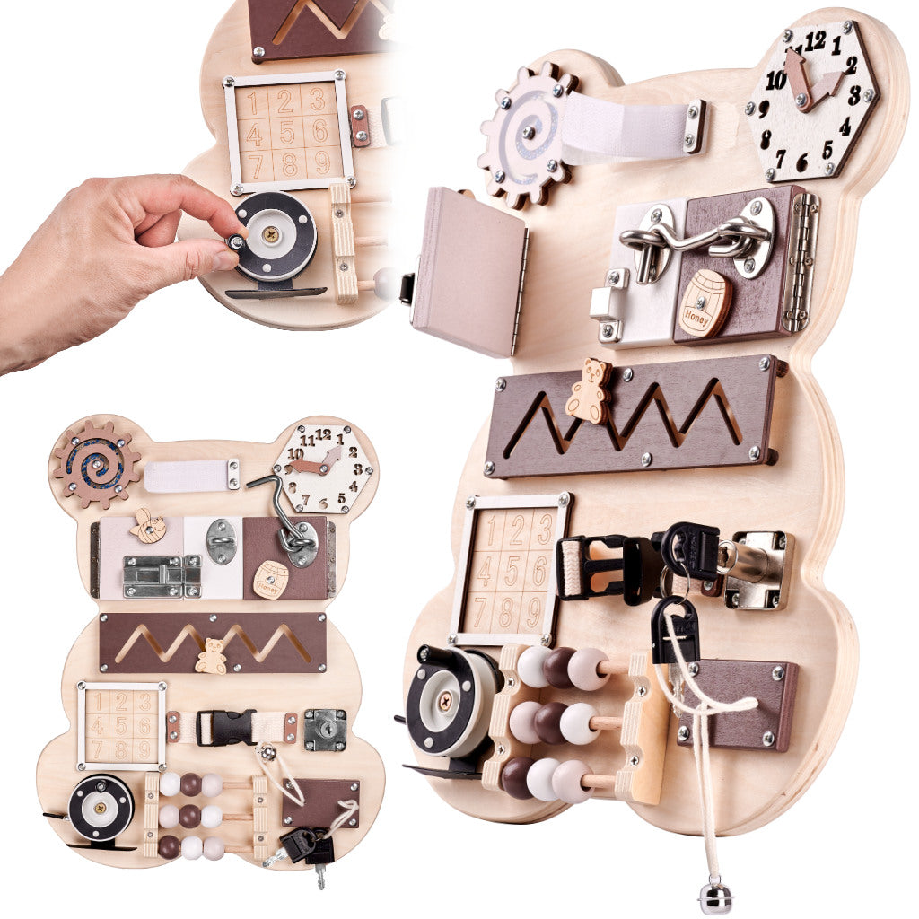 Siekiant atkreipti vaiko dėmesį ir paskatinti jį žaisti, lentai buvo suteikta mielo meškiuko forma , o naudojamos spalvos malonios ir džiuginančios akį!
