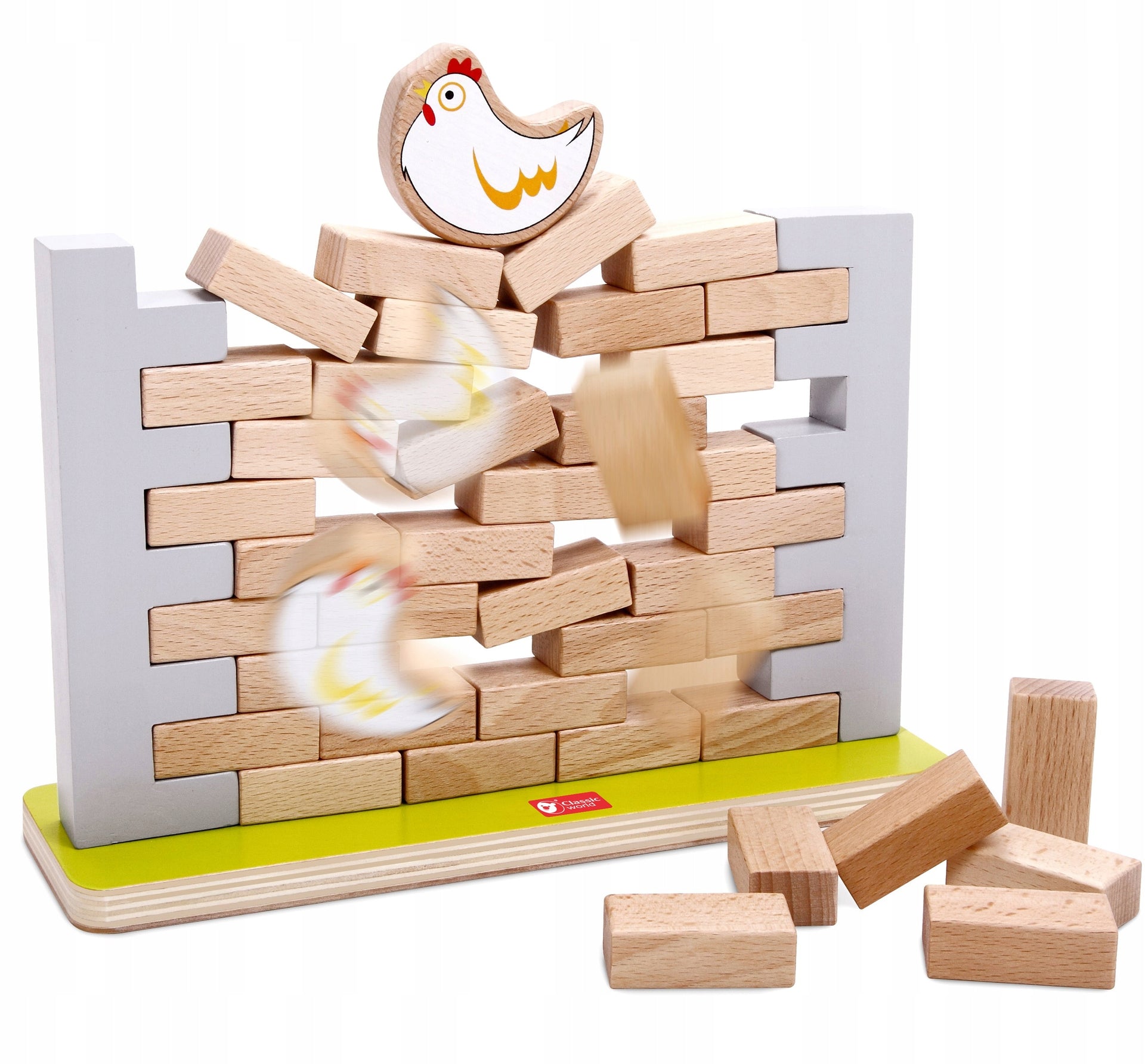 - Rinkinį sudaro 44 dalys, pagrindas, 2 šonai, višta, 40 plytų.