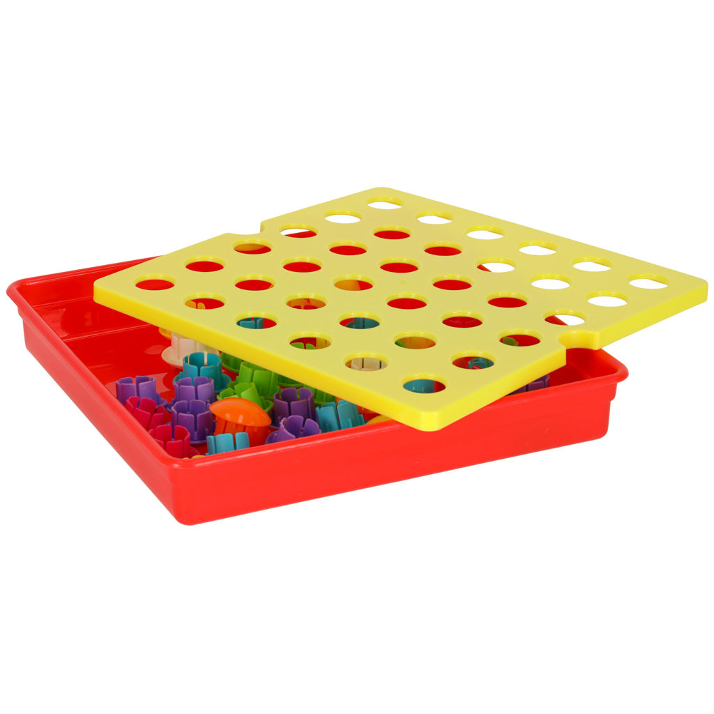Smagiausia yra į paveikslėlyje esančias skylutes įstatyti tinkamos spalvos mygtukus.