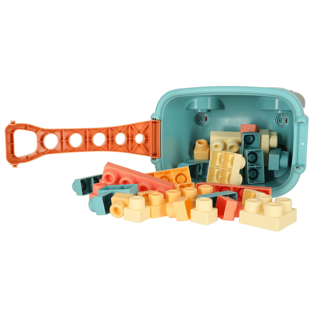Spalvingos lavinamosios kaladėlės supakuotos į praktišką dėklą su ratukais, dėl kurio perkelti vaiko mėgstamas kaladėles iš vienos vietos į kitą bus daug lengviau.