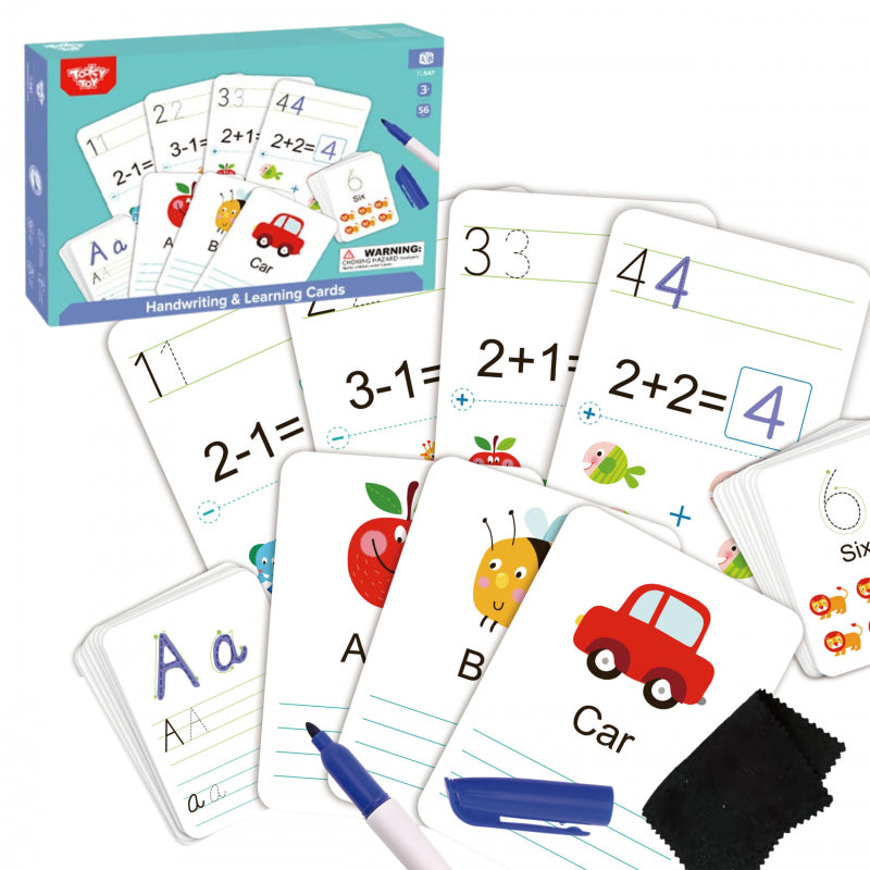 TOOKY TOY edukacinės kortelės yra puiki dovanų idėja . Rinkinys, kurį sudaro 56 elementai, paskatins jūsų vaiką mokytis skaičių, raidžių ir angliškų žodžių . Kortelės, pagamintos iš kieto lakuoto popieriaus, išgyvens daugelio niekšų žaidimus. Rinkinys pagamintas taip , kad vaikas galėtų daug kartų praktikuoti rašybą dėl komplekte esančio nutrinamo žymeklio ir audinio . Iliustracijos ir spalvos pritrauks jūsų dėmesį ir paskatins jūsų vaiką įgyti naujų įgūdžių . Jūsų vaikas turės galimybę tiksliau suprasti sudėtingą rašymo ir skaičiavimo meną . Be to, jis išmoks pirmuosius žodžius anglų kalba. Taigi, griebkite savo žymeklius!