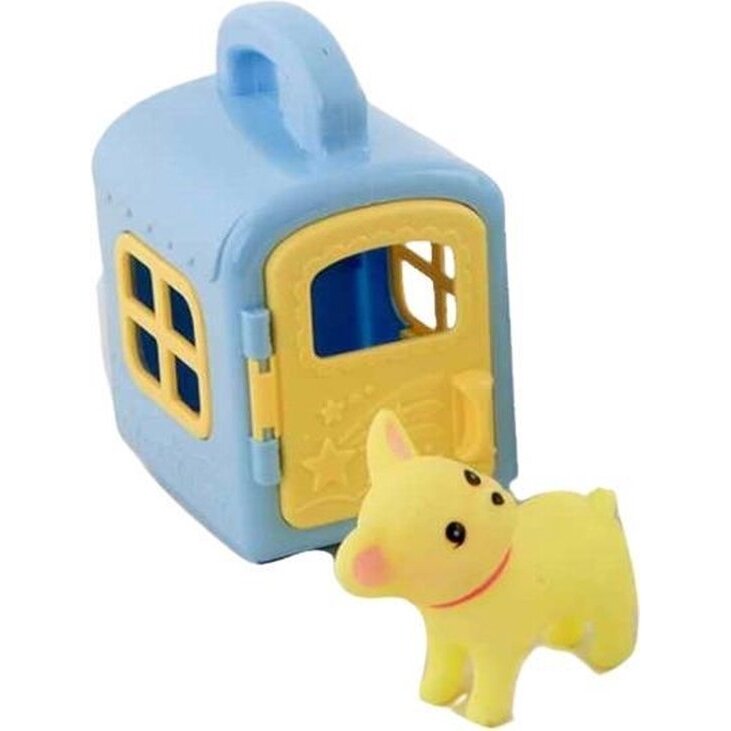 3 rūšių gyvūnai. Kartu pridėti ir priedai (lėkštutė, dubenėlis ir kt.)