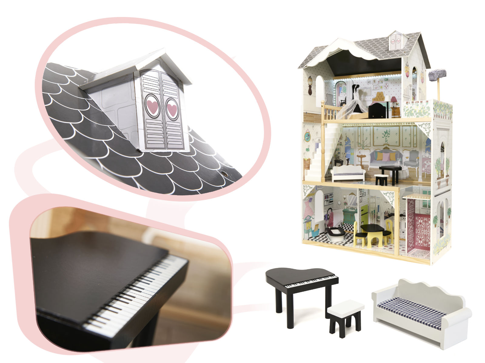 Gražus medinis modernaus stiliaus lėlių namelis bus kiekvieno vaiko svajonė.