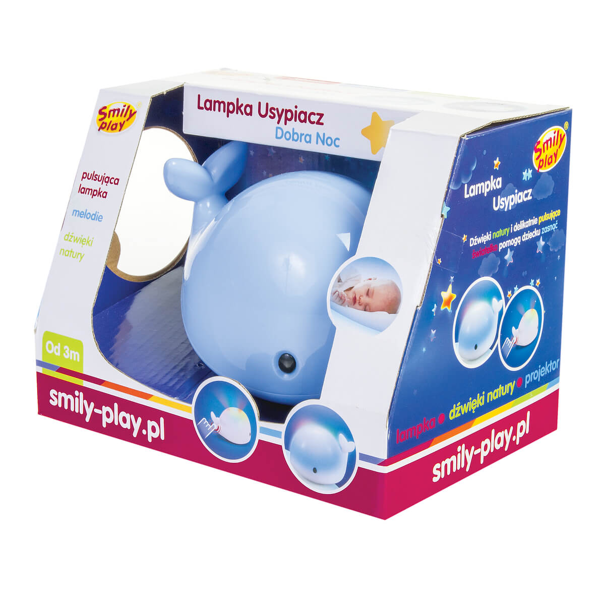 Mėlynasis banginis padeda nuraminti ir užliūliuoti jūsų mažylį, užpildydamas kambarį žvaigždžių šviesomis ir atkurdamas ramias melodijas, garsus ir gamtos garsus.