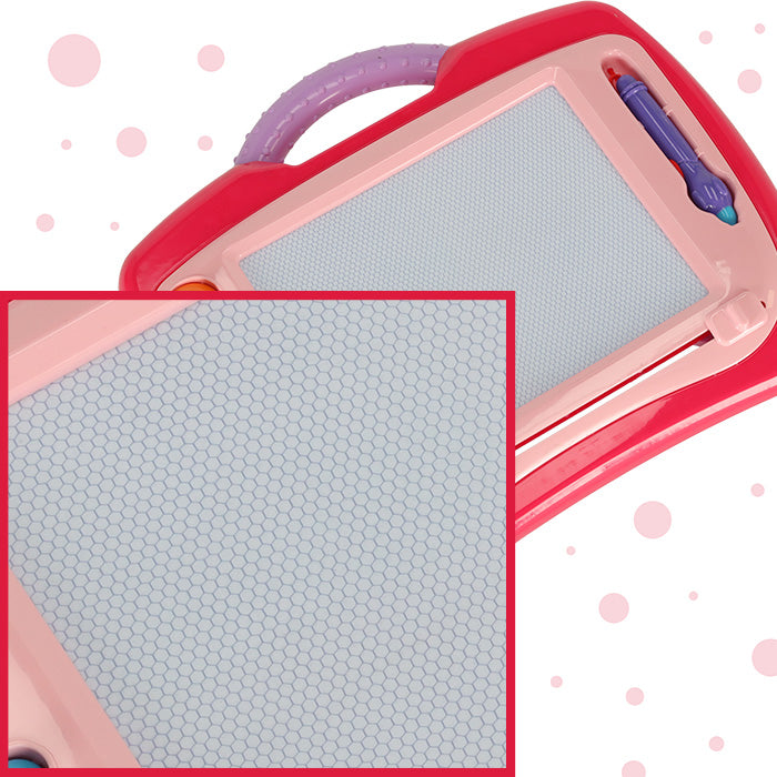 Naudodamas pridedamą rašiklį, jūsų mažylis lentoje gali sukurti bet kokį paveikslėlį, koks tik šauna į galvą. O kai nuspręs, kad piešinys nepavyko, arba nuspręs, kad atėjo laikas kurti ką nors naujo - jis gali naudoti slankiklį ir ištrinti viską, kas yra lentoje!