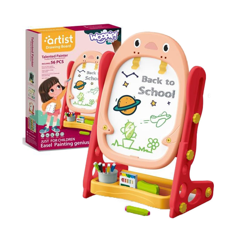 WOOPIE dvipusė magnetinė lenta, skirta piešti, mokytis skaičių ir raidžių, 56 vnt.