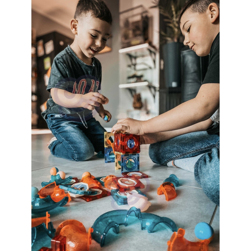Magnetiniai blokeliai iš WOOPIE prekės ženklo pritrauks jūsų vaiko dėmesį ir sužavės. Blokai labai lengvai susijungia vienas su kitu ir iš jų galima sukurti nuostabias konstrukcijas su čiuožyklomis , pvz., takelį, kuriuo juda kamuolys. Trasą galima apšviesti pridedamu žibintuvėliu, kad būtų dar įspūdingiau, o vaikas pats gali stebėti, kaip juda šviesa, o tai lavins jo suvokimą . Vien tik trasos išdėstymas taip, kad kamuoliukai be problemų pasiektų galą, lavins Jūsų vaiko loginį mąstymą , vaizduotę , kūrybiškumą ir leis susikaupti kuriant struktūrą. Dėliodamas kaladėles vaikas mokosi formų ir spalvų, lavina vadinamuosius rankinius įgūdžius. smulkioji motorika .