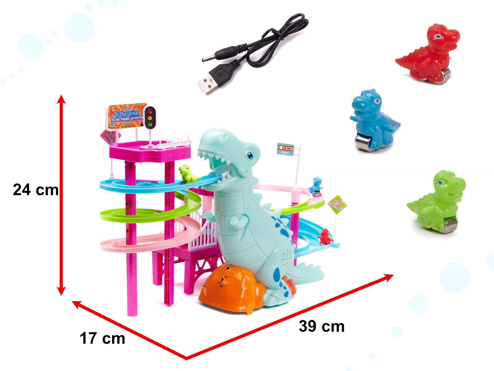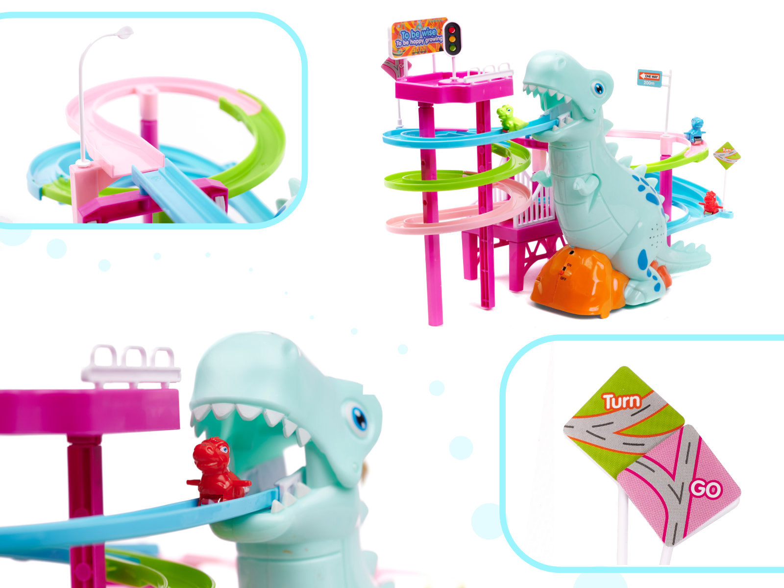 Dinozaurų lenktynių trasa, su automobiliais – vaizdas 4