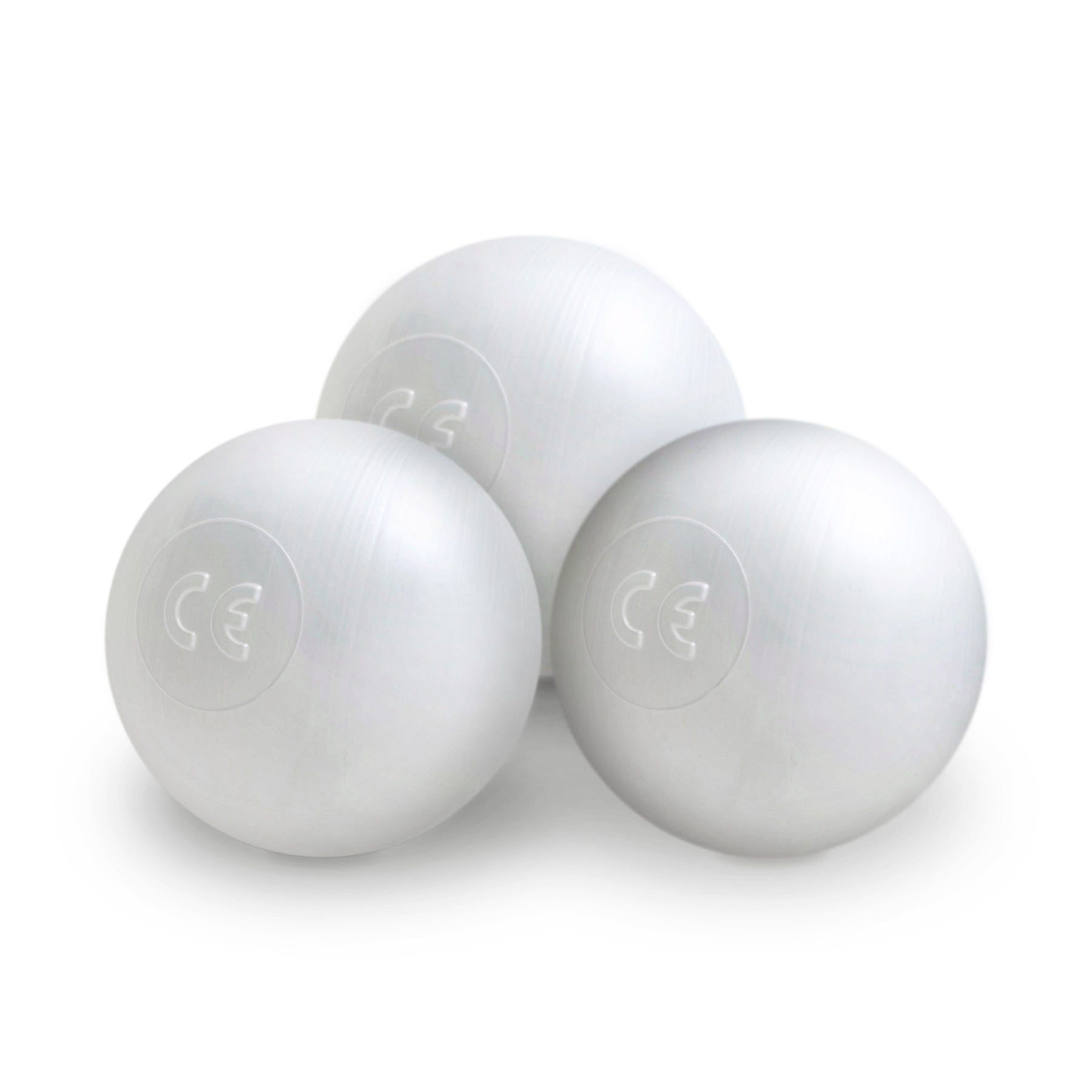 Rinkinyje rasite 300 minkštų, perlamutrinių, sidabrinių ir mėtų spalvos kamuoliukų, kurie garantuos valandų valandas džiugaus žaidimo. Šis komplektas padeda stimuliuoti jūsų vaiko motorinę bei jutiminę raidą. Baseino medžiaga – aukščiausios kokybės mėlynas kordo audinys (veliūras), kuris suteikia estetiškumo ir puikiai tinka kaip stilingas kambario akcentas.