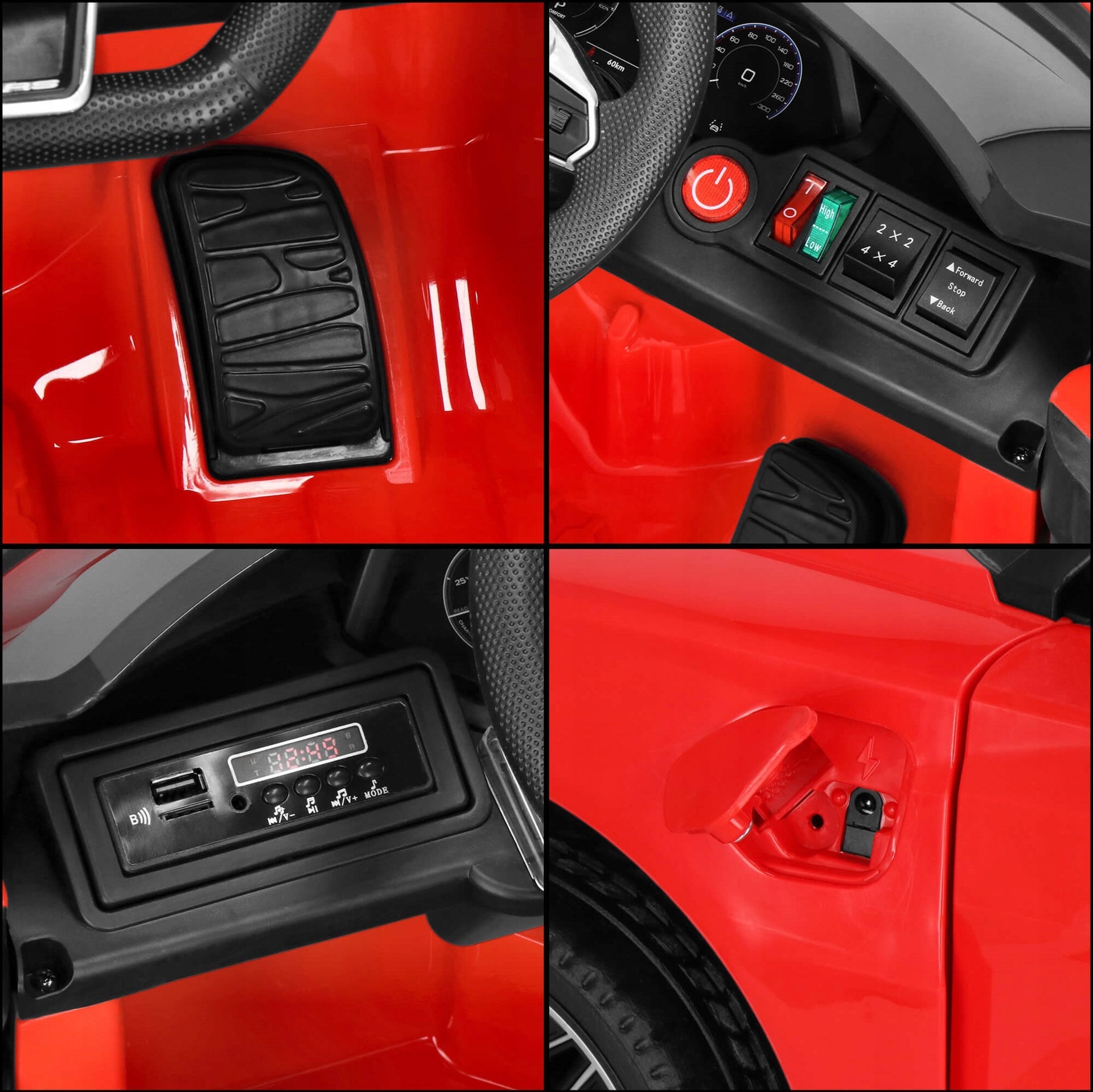 Medžiaga: Plastikas, Metalas, EVA (ratai), Oda (sėdynių apmušalai)