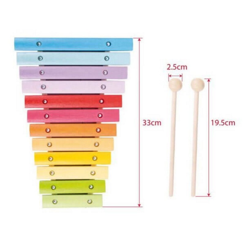 - rinkinyje yra 2 grojimo lazdelės, kurios patogiai įsikiša į ksilofoną.
