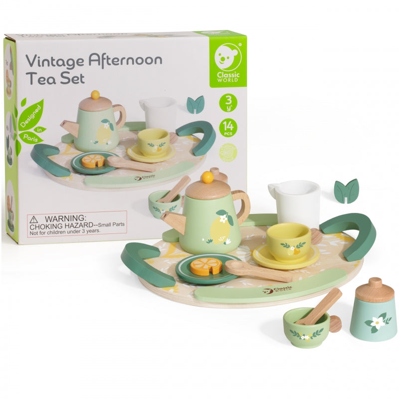 „Classic World“ arbatos rinkinys yra puiki idėja ilgoms pramogoms jūsų mažyliui. Vaikas jus nustebins ne kartą vaišindamas skania arbata . Popietės arbatą paverskite nuostabiu ritualu su įvairiais priedais, tarp kurių: du skirtingų spalvų puodeliai , arbatinukas ir gėlių padėklas bei įvairūs arbatos priedai. Gražios pastelinės spalvos papildomai paskatins jūsų vaiką žaisti. Rinkinys pagamintas iš medžio masyvo , kad Jūsų mažylis galėtų saugiai mėgautis gardžia arbata.