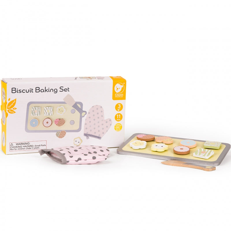 Kiekvienos mažos mergaitės svajonė yra „Classic World“ kepimo rinkinys. Jūsų vaikas mus dar ne kartą nustebins pavaišindamas skaniais sausainiais! Žavingas 8 dalių rinkinys skatina vaizduotę ir kūrybiškumą. Gražios pastelinės spalvos tikrai pradžiugins kiekvieną jauną šeimininkę. Sausainių kepimo rinkinį sudaro 8 pjaustomi sausainiai, pirštinė, grandiklis ir padėklas.