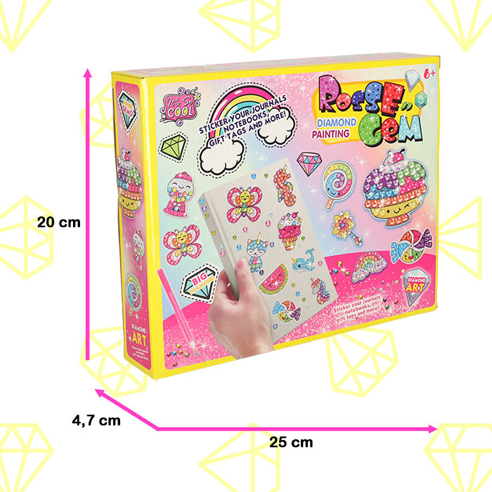 Rinkinyje yra daugybė spalvotų deimantų, kurie leis sukurti tikrą meno kūrinį! Galite apsiriboti atspausdintos drobės apklijavimu akriliniais kristalais arba leisti sau kurti vaizdus pagal savo fantaziją!