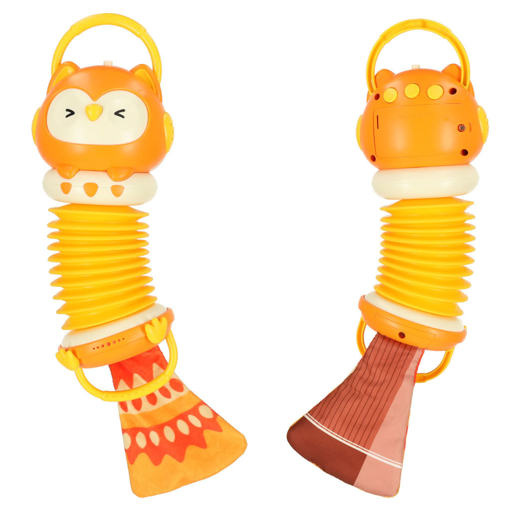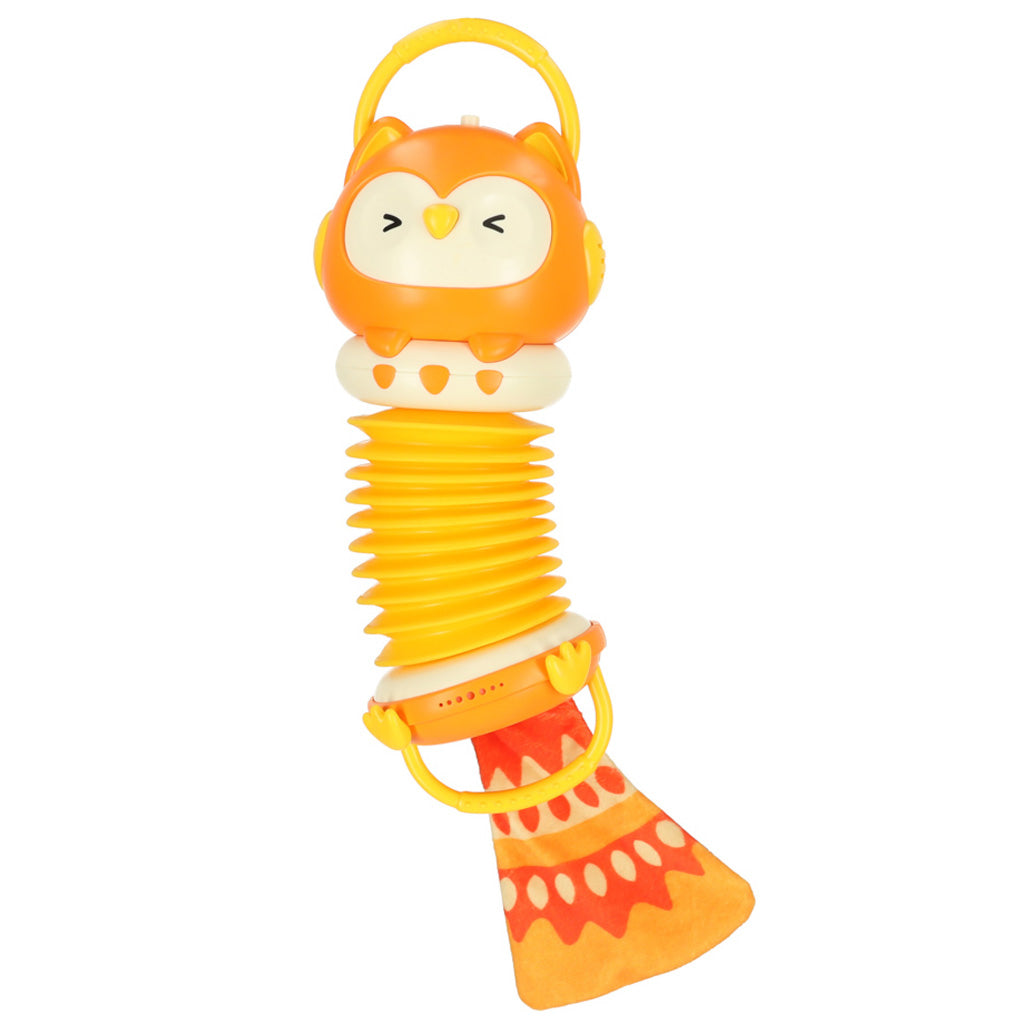 AKORDEONAS HARMONIJA VAIKAMS ORANŽINĖ PELĖDA, GROJANTI VADOVAUJAMA 30CM Harmonija vaikams: Puikiai tinka kaip pirmasis muzikinis žaislas! Suteiks daug džiaugsmo ir lavins įvairius naudingus įgūdžius! Ji turi švieseles ir garsiakalbį, verta mažojo menininko! Jis turi šnarančią uodegą! Techninės specifikacijos: Amžius: 18 m+ Medžiaga: plastikas Maitinimo šaltinis: 2 x AA baterijos (į komplektą neįeina) Išmatavimai: Akordeono pelėda: Dydis: 33 cm x 10 cm Pakuotė: 19 cm x 24 cm x 10,5 cm Muzika yra puikus būdas skatinti vaiko vystymąsi - tiek rankų, tiek intelekto! Įdomus dizainas ir šiugždanti uodega skatins žaisti, o tai lavins mažylio rankų miklumą ir ugdys jo klausą bei tikslumą! Harmonija maitinama dviem AA tipo baterijomis! Kai jos išsikraus, tiesiog pakeiskite jas ir linksmybės galės tęstis! Gaminys supakuotas estetiškoje kartoninėje dėžutėje su langeliu, todėl puikiai tinka dovanoti!