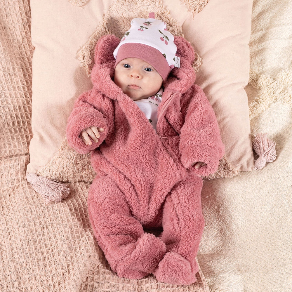Pagamintas iš mielo dirbtinio kailio, jis puikiai tinka šaltoms dienoms. Kapišonas su ausytėmis puošia drabužį. Kombinezonas užsidaro patogiu užtrauktuku, todėl kūdikio apsirengimas tampa daug lengvesnis. Medžiaga visiškai saugi kūdikio odai ir sertifikuota pagal Oeko-Tex Standard 100.