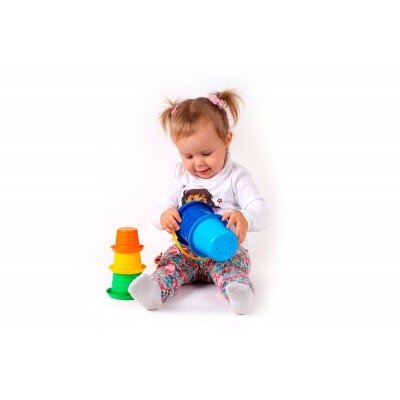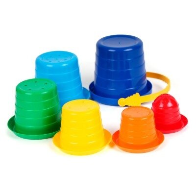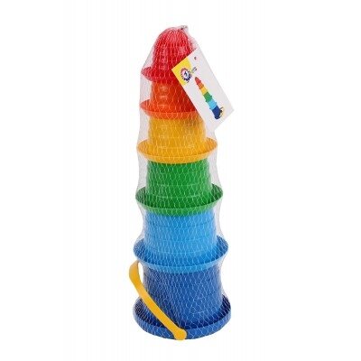 Šešių spalvų formelės smėliui, iš kurių vaikas gali pasidaryti aukšt? piramidę arba sudėti vien? į vien? .