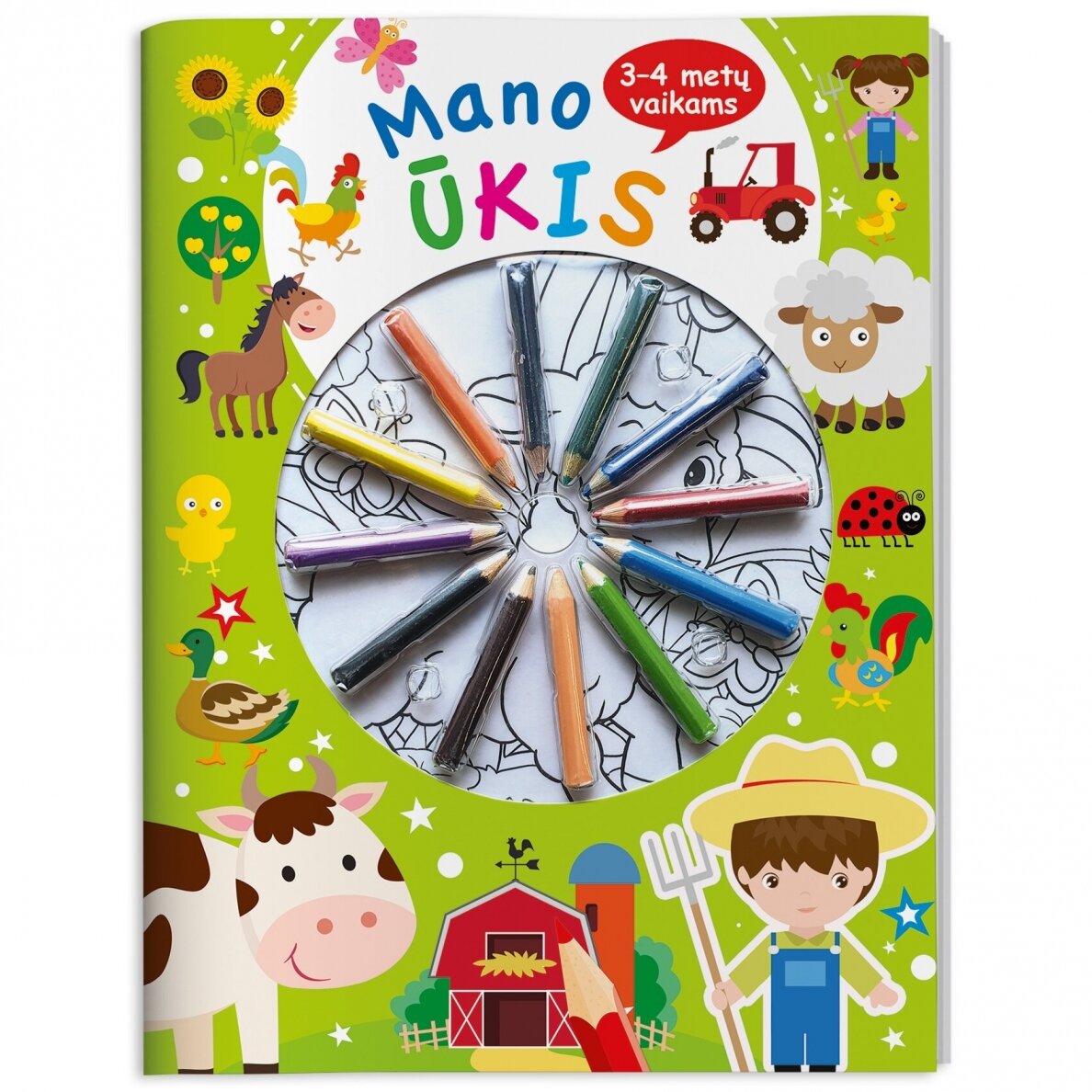 Ši knygelė su spalvotais pieštukais padės vaikui įdomiai leisti laiką ir pažinti ūkio gyvūnus. Atsakydamas į klausimus ir spalvindamas paveikslėlius jis lavins ranką, vaizduotę, mąstymą ir gebėjimą susikaupti.