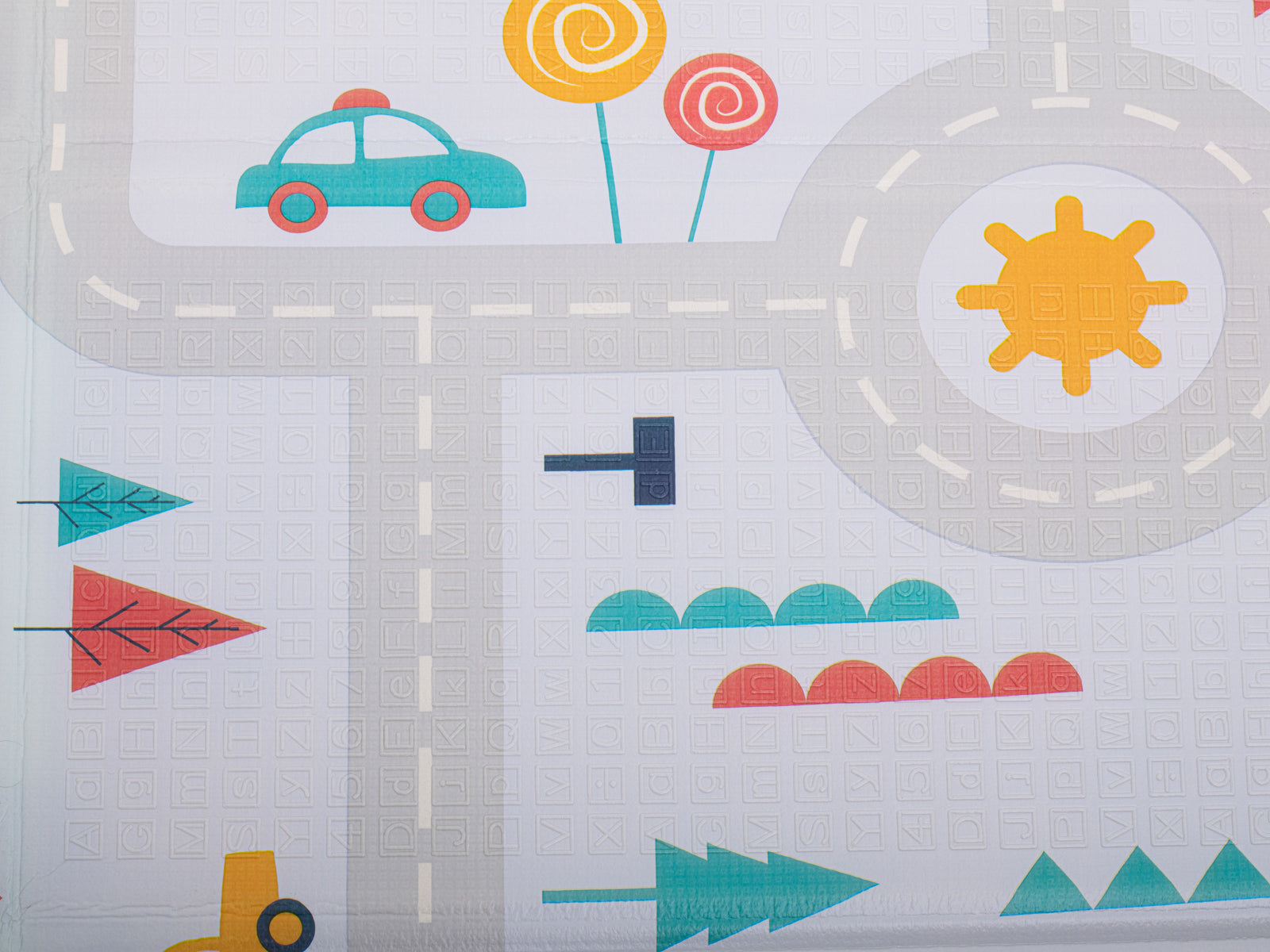 Kilimėlis su gatvės ir miško grafika pažadins vaiko smalsumą ir norą tyrinėti pasaulį.