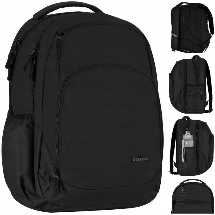 Didelė, universali kuprinė iš „Starpak“, puikiai tinkanti paaugliams ir suaugusiesiems. Kuprinės talpa siekia net 27 litrus, todėl užteks vietos knygoms ar aksesuarams ilgesnei kelionei. Kuprinė turi du skyrius ir didelę priekinę kišenę su užtrauktuku. Šis kuprinės modelis turi paminkštintas pečių rankenas, kišenes nešiojamam kompiuteriui, kišenes planšetiniam kompiuteriui, kišenes telefonui ir dvi šonines kišenes gėrimams. Jis pagamintas iš vandeniui atsparių audinių, turi EVA putplasčio nugarėlę, paminkštintą rankeną ir sustiprintą dugną. Puiki kokybė, patikrintas, populiarus kuprinės dizainas.