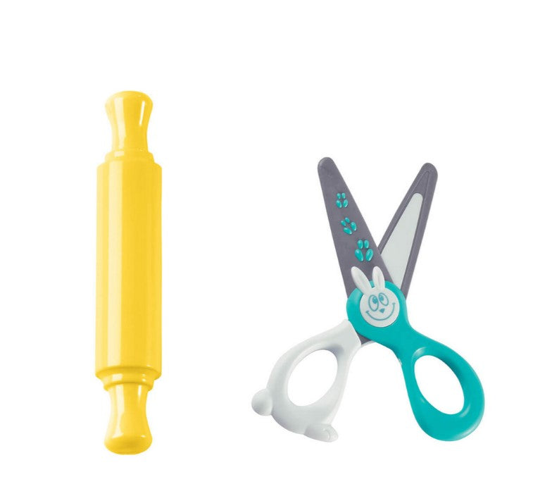 Pirmasis vaiko rinkinys savarankiškam modeliavimui. Daugiafunkcinės dėžutės matmenys 21×22,5×7 cm.