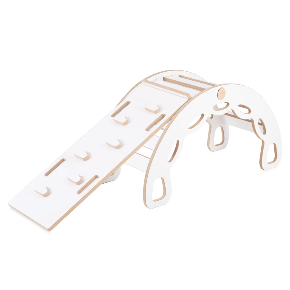 PLUSH NEST 4in1 Medinis Rokeris Mažyliams: Sūpynės, Čiuožykla, Laipiojimo Sienelė, Balta/Pilka – pagrindinis vaizdas