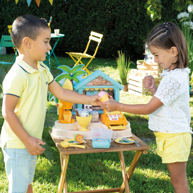 - - paplūdimio baras leidžia linksmintis įvairiais būdais - vaikai gali pasigaminti ledus su glajumi ir pabarstukais, gėrimus, vaisių iešmelius, o paskui viską sudėti į kasą,