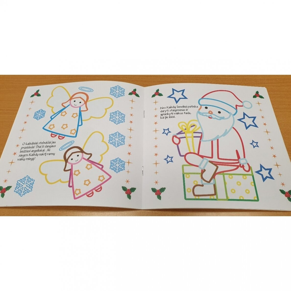 Kalėdinis laikotarpis – puikus metas užsiimti smagia ir prasminga ugdomąja veikla. Spalvindamas piešinėlius vaikas pažins spalvas, lavins ranką ir vaizduotę. Pasiūlykite jam rinktis tokias spalvas, kokiomis nupiešti figūrų kontūrai. Jie stori, tad vaikui bus lengva jų neperžengti.