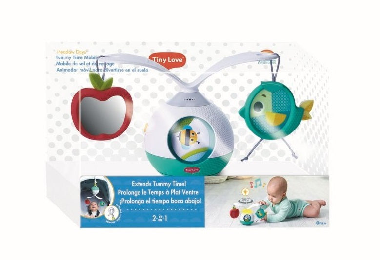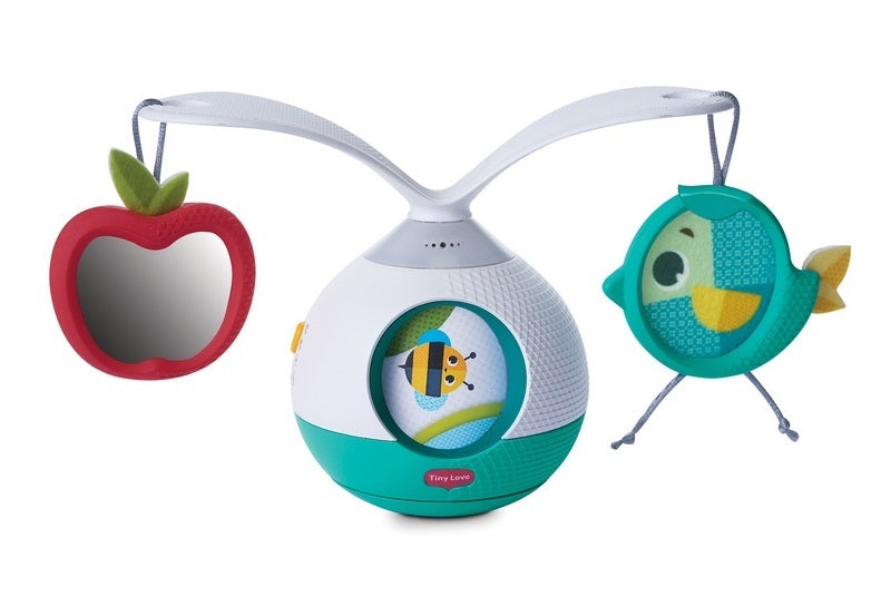 Žaislas turi balansavimo judesį ir 360° besisukančias rankas, ant kurių kabo draugiški gyvūnų personažai, su veidrodžiu ir spiraline grafika, kad kūdikis nuolat įkvėptų pakelti galvą.