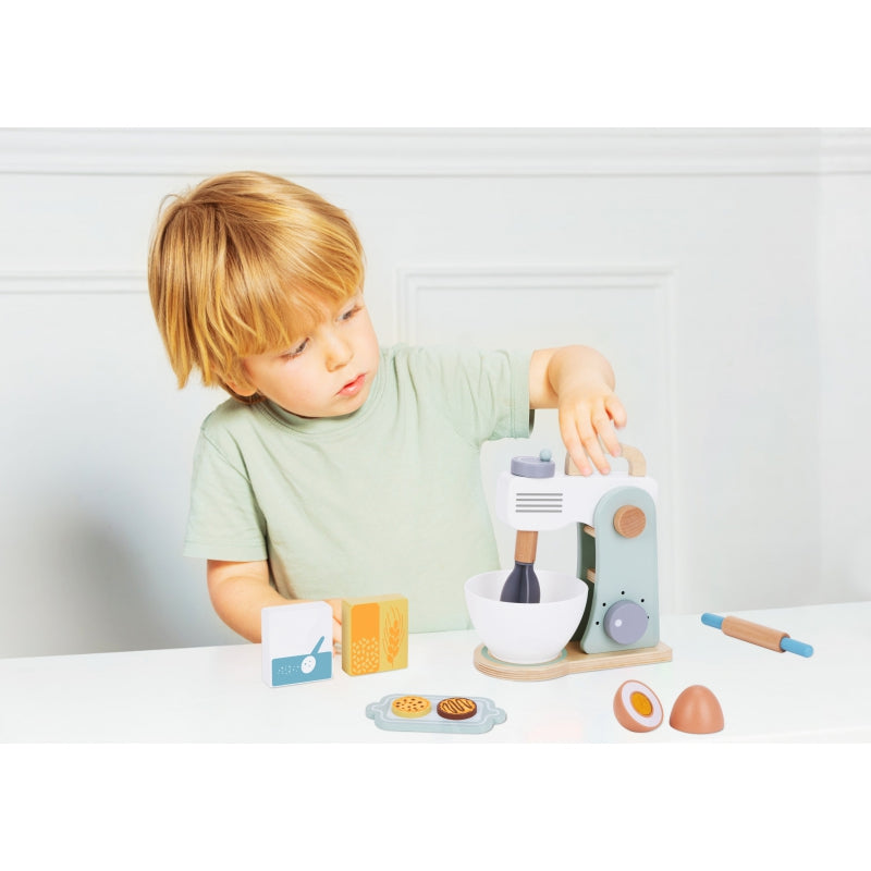 Vaikams skirta pastelinių spalvų medinė maišyklė Tooky Toy yra naudingas ir stilingas vaikiškos virtuvės priedas. Visi vaikai mėgsta skanius sausainius. Kodėl jų neparuošus smagiai? Į dubenį įmuškite kiaušinį ir miltus, nepamirškite cukraus ir pradėkite minkymo procesą. Taip gausite skanius sausainius, tarsi jie būtų tikri. Mažasis virtuvės šefas galės pavaišinti savo artimuosius gardžiais kepiniais. Vaidmenų žaidimai yra svarbi vaikų ugdymo ir vystymosi dalis. Jie leidžia jūsų vaikui lavinti savo vaizduotę ir lavinti įvairius socialinius bei bendravimo įgūdžius, imituojant kasdienes suaugusiųjų situacijas.