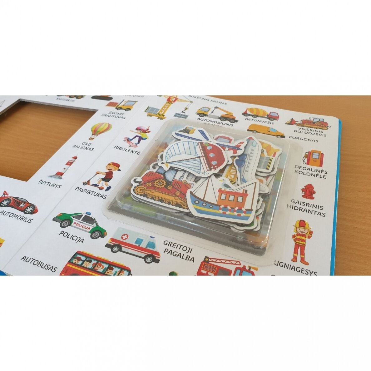 Esame nuolat apsupti įvairių transporto priemonių. Jos padeda žmonėms greičiau kur nors nuvykti arba nudirbti sunkius darbus. Žinoma, svarbu laikytis saugaus elgesio taisyklių, kitaip gali nutikti bėda. Dėliodami 20 magnetukų vaikai susipažins su įvairių sričių transporto priemonėmis ir išmoks orientuotis erdvėje. Be to, tai puiki proga pakalbėti su vaikais apie įvairius darbus ir profesijas, saugų elgesį kelyje.
