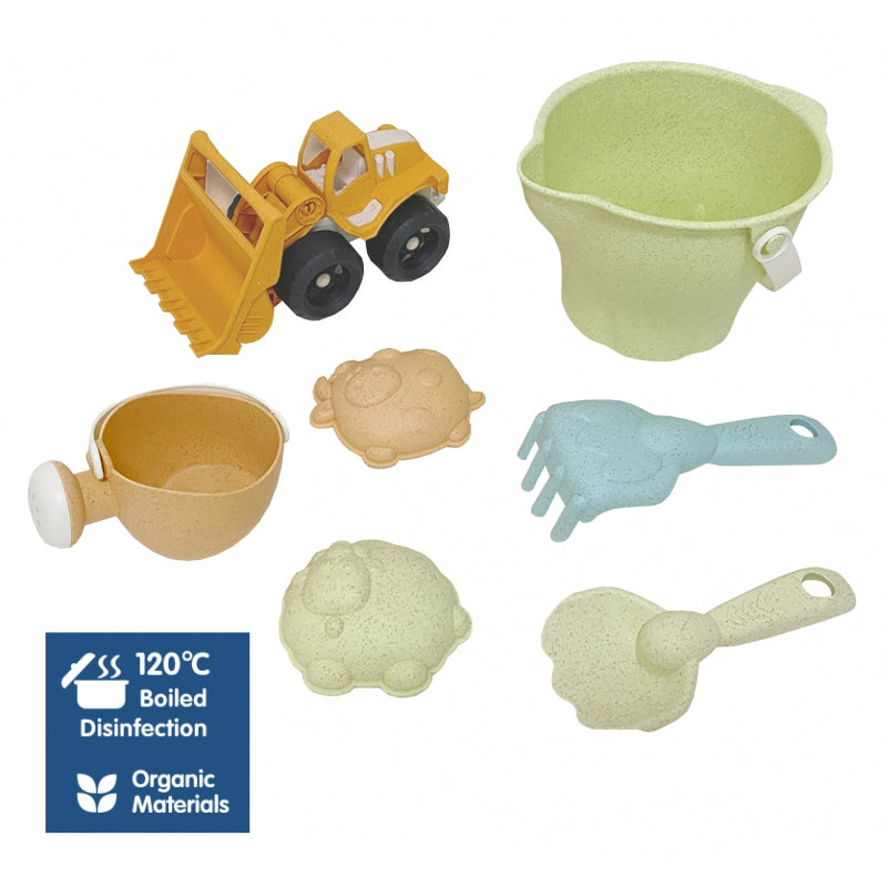 WOOPIE prekės ženklo smėlio kibirų rinkinys iš GREEN serijos puikiai papildys smėlio dėžę ar net sodą. Rinkinį sudaro 7 elementai: kibiras, laistytuvas, 2 formelės, mentelė, grėblys ir mašinėlė. Kibiras turi patogią nešiojimo rankeną. Rinkinys yra madingiausio pastelinio dizaino ir buvo pagamintas iš organinės biologiškai skaidžios (savaime suyrančios) medžiagos. Be to, jis turi būti kompostuojamas. Saugus vaikams – dezinfekuojamas 120 laipsnių temperatūroje. Puiki pramoga smėlio dėžėje, paplūdimyje ir net sode garantuota! Ekologiškas produktas!